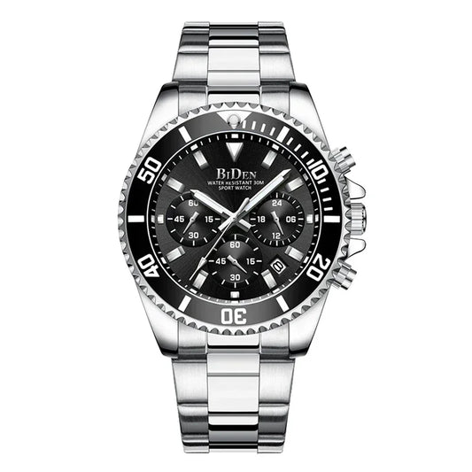 BIDEN Mens Chronograph Stainless Steel Strap Waterproof Date Quartz Watch, Business Casual Wrist Watches