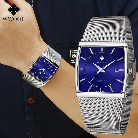 WWOOR 2024 Fashion Men Watch Full Steel Mesh Belt Waterproof Men Clock Luxury Watch For Men Quartz Sport Wristwatch Reloj Hombre