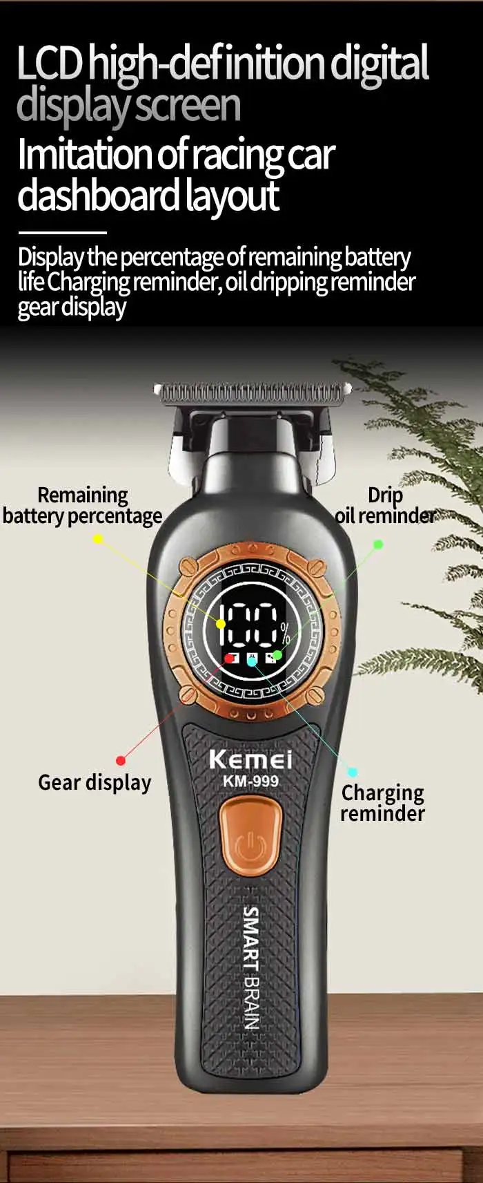 Kemei 999 Electric Hair Cut Machine Digital Display Hair Clipper Professional Cordless Precision Adjustment Trimmer Shaver Hair
