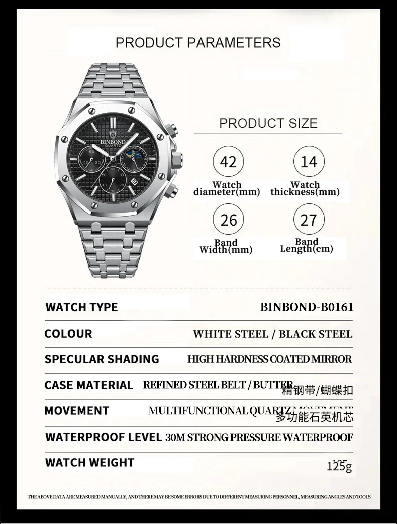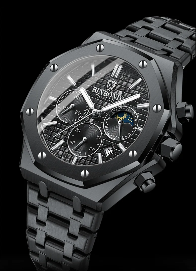 BINBOND Fashion Business Top Luxury Brand Quartz Watch Men Watches Stainless Steel Waterproof Man Wristwatch Relogio Masculino