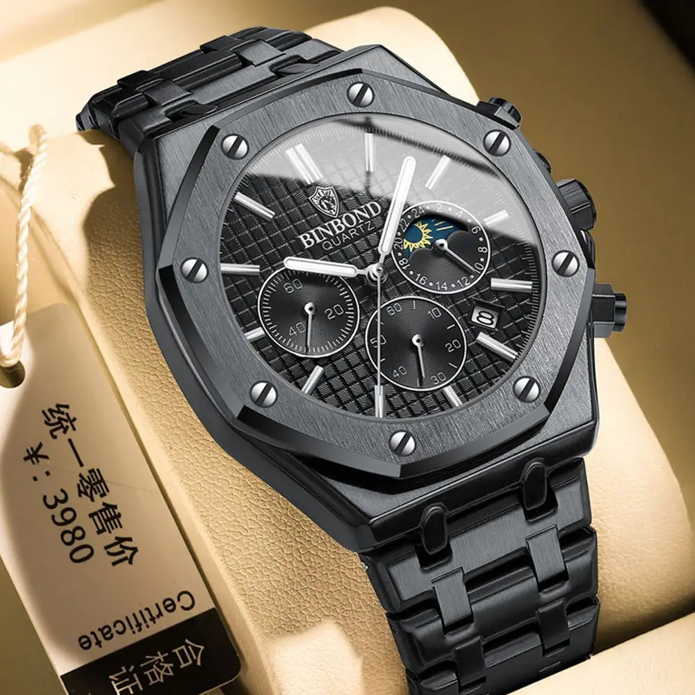 BINBOND Fashion Business Top Luxury Brand Quartz Watch Men Watches Stainless Steel Waterproof Man Wristwatch Relogio Masculino