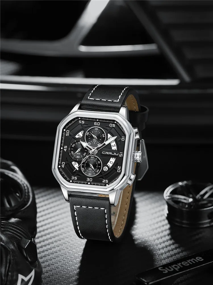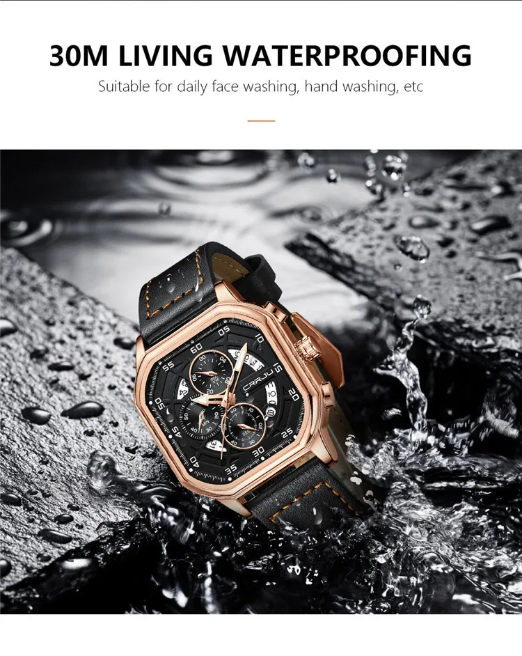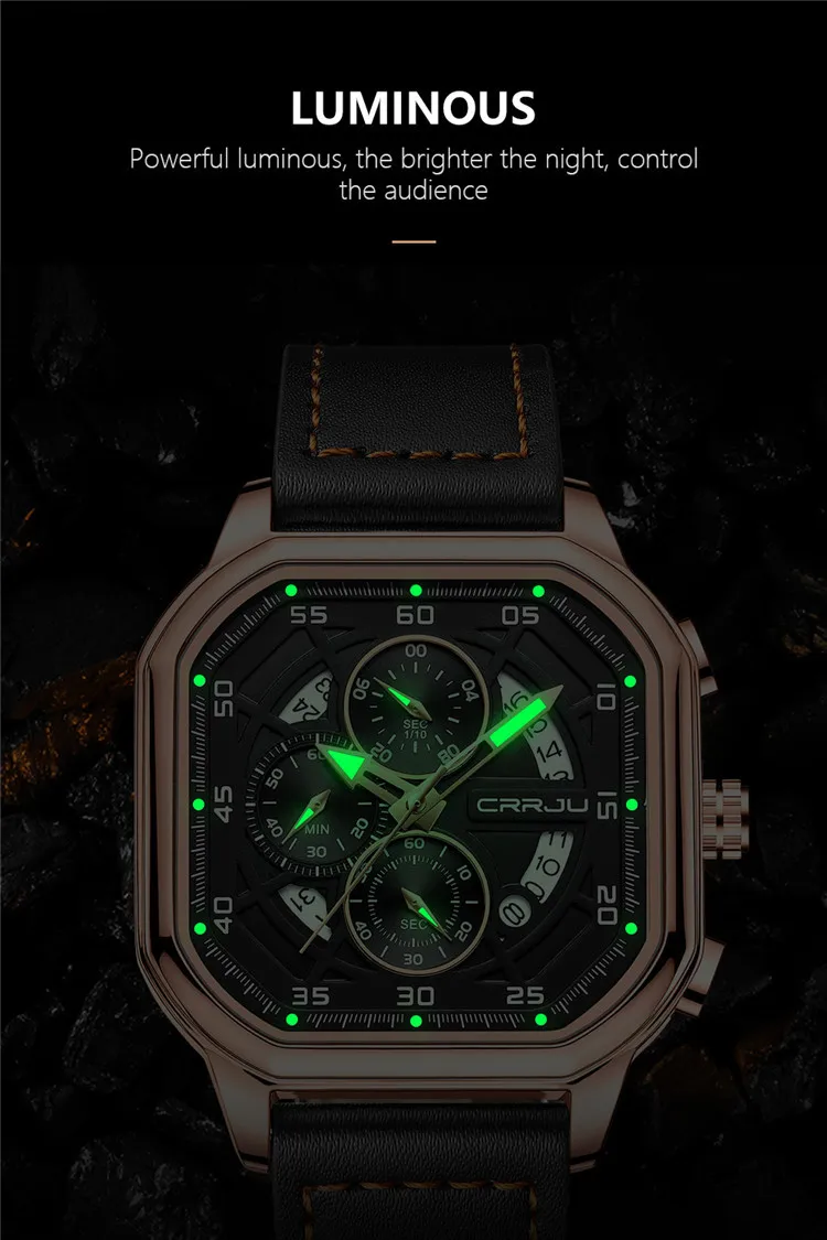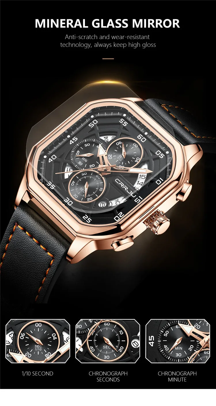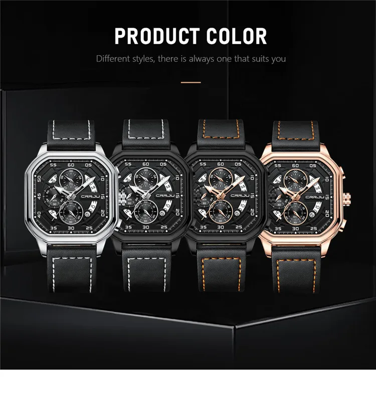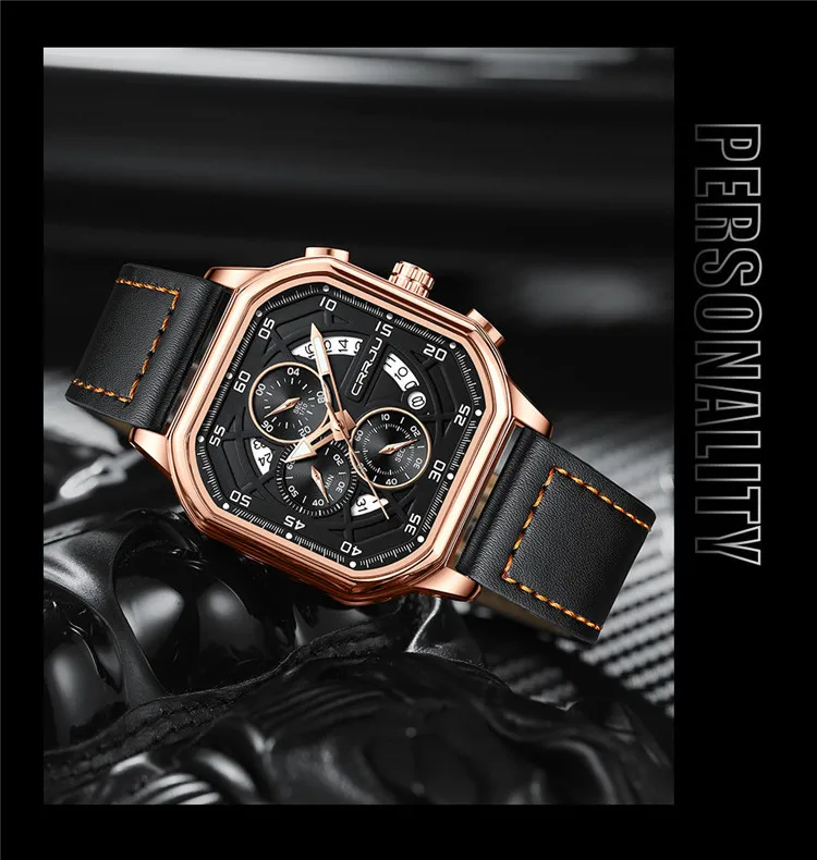 SPECIFICATIONSAge: 2023Band Length: 24cmBand Material Type: LeatherBand Width: 22 mmBand material: Top Leather strapBattery Life: 2 yearsBrand Name: CRRJU,CRRJU WatchCase Material: Stainless SteelCase Shape: OvalCase Thickness: 12 mmClasp Type: Folding Clasp with SafetyColor: 4-colorsDial Diameter: 43mmDial Display: PointerDial Window Material Type: HardlexFeature: chronograph,Day/Date,Waterproof,Luminous,Luminous HandsKeywords: Luxury Quartz WristwatchesLogo: CRRJU-logoMOQ: 1-pcsMaterial: LeatherModel...