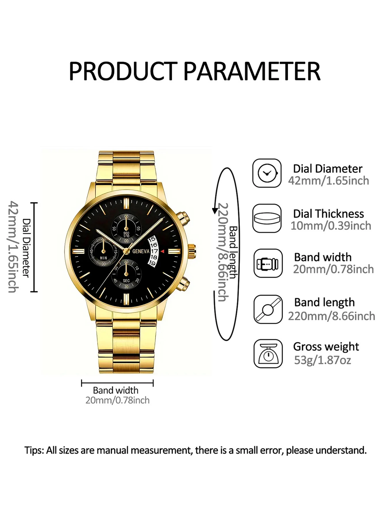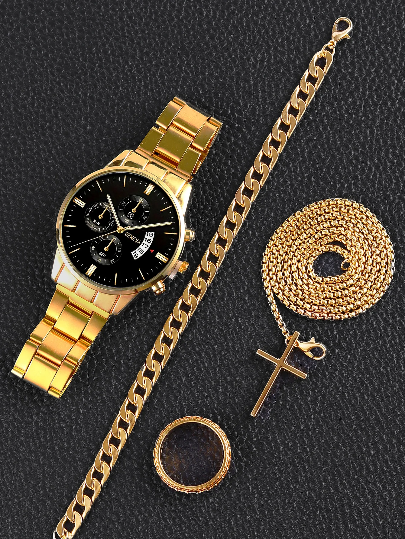 Fashionable men's quartz watch band calendar with bracelet necklace ring set party gift