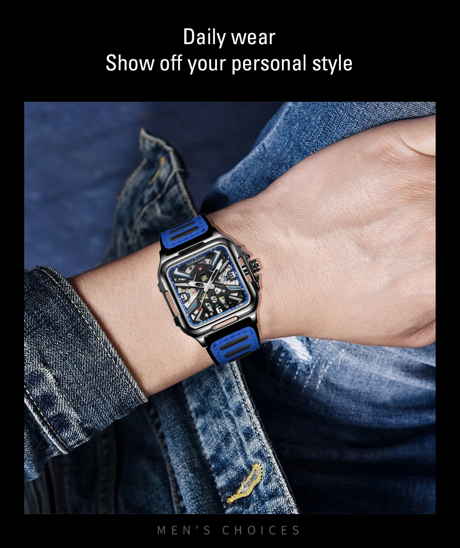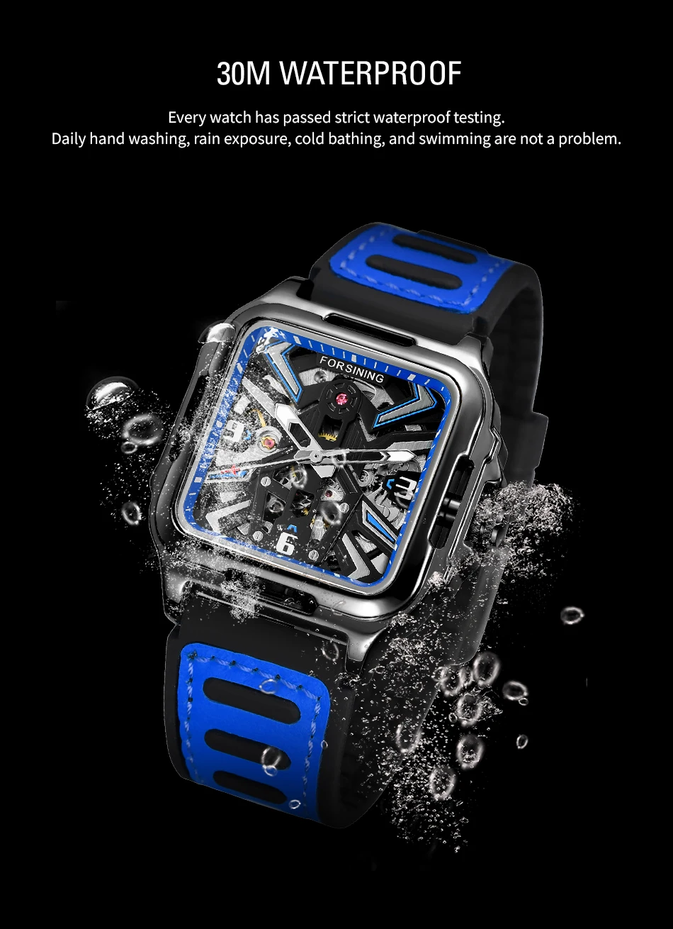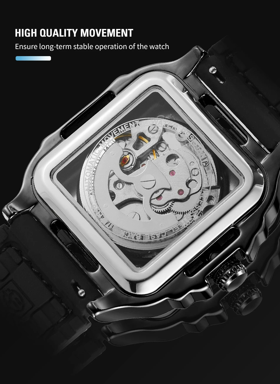 SPECIFICATIONSAge: NewBand Length: 20 cmBand Material Type: Silica gelBand Width: 22 mmBrand Name: ForsiningCase Material: AlloyCase Shape: SquareCase Thickness: 13.5mmClasp Type: BuckleDial Diameter: 40 mmDial Display: PointerDial Window Material Type: HardlexFeature: LuminousMaterial: AlloyModel Number: FSG8288M3Movement: Mechanical(Auto)Movement Brand: SHANGHAIPlace of Origin: Guangdong, ChinaStyle: sport,Fashion,Hip Hop,StreetType: CHARM,Fashion,Luxury,AutomaticUser: MenWater Resistance Depth: No waterproofWeight:...