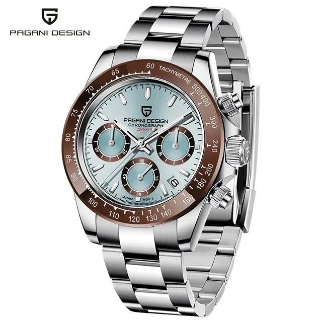 Ice Blue PAGANI DESIGN 1644 Men Watch Quartz Chronograph Waterproof VK63 AR Sapphire Wristwatch