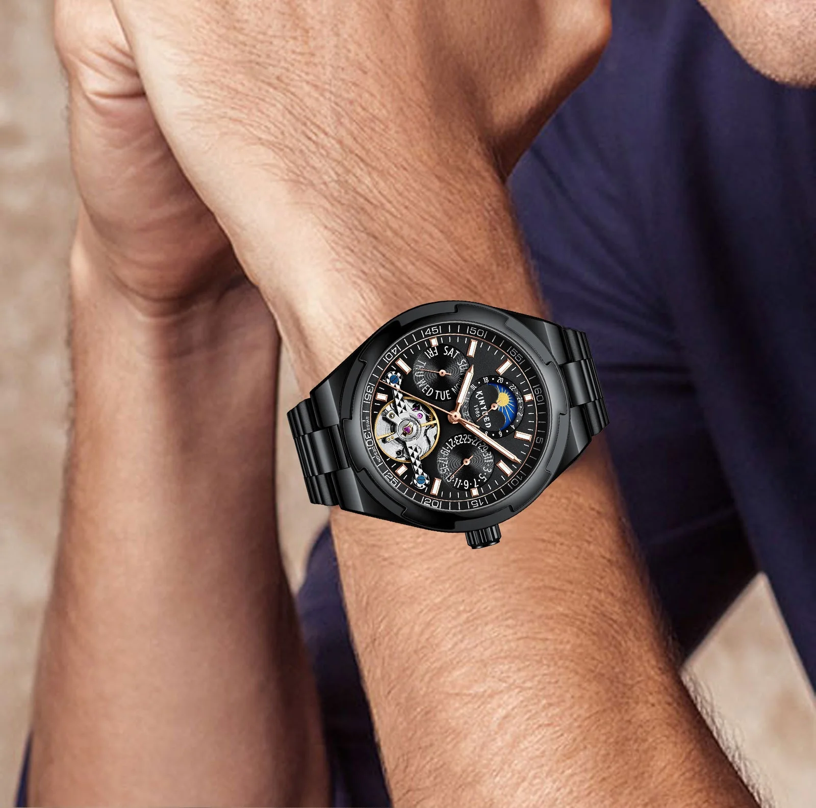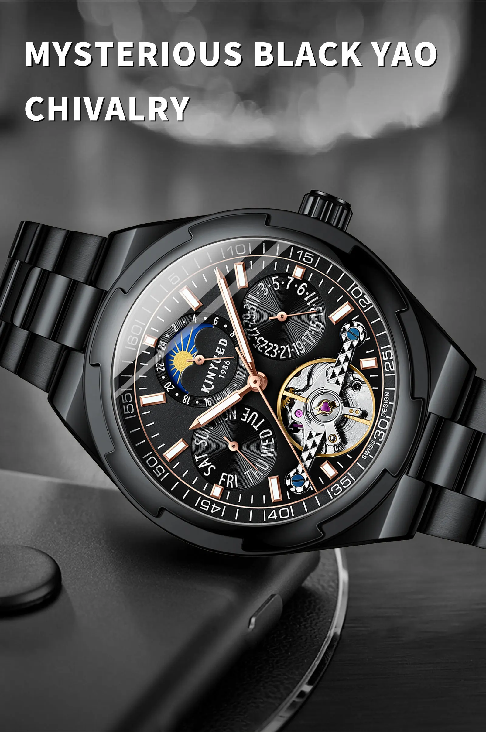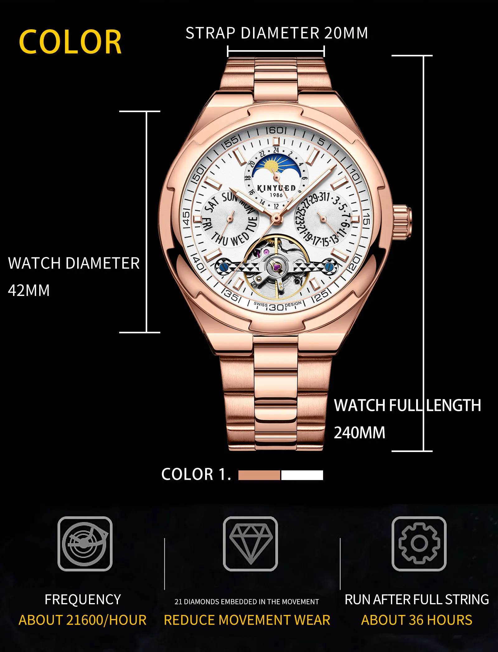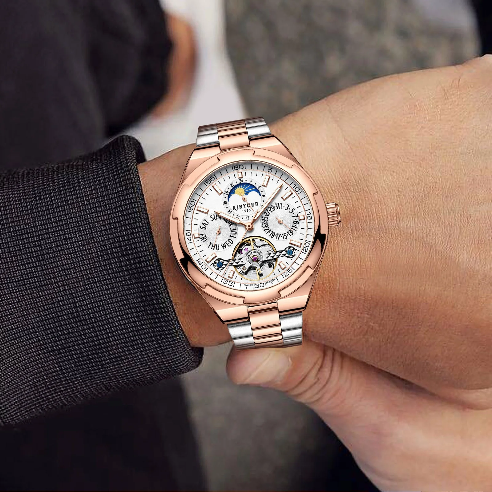 Feature: Luminous,Waterproof,hollow out,Moon Phase,tourbillon,Power Reserve,Water Resistant,Luminous Hands,chronograph,Day/Date