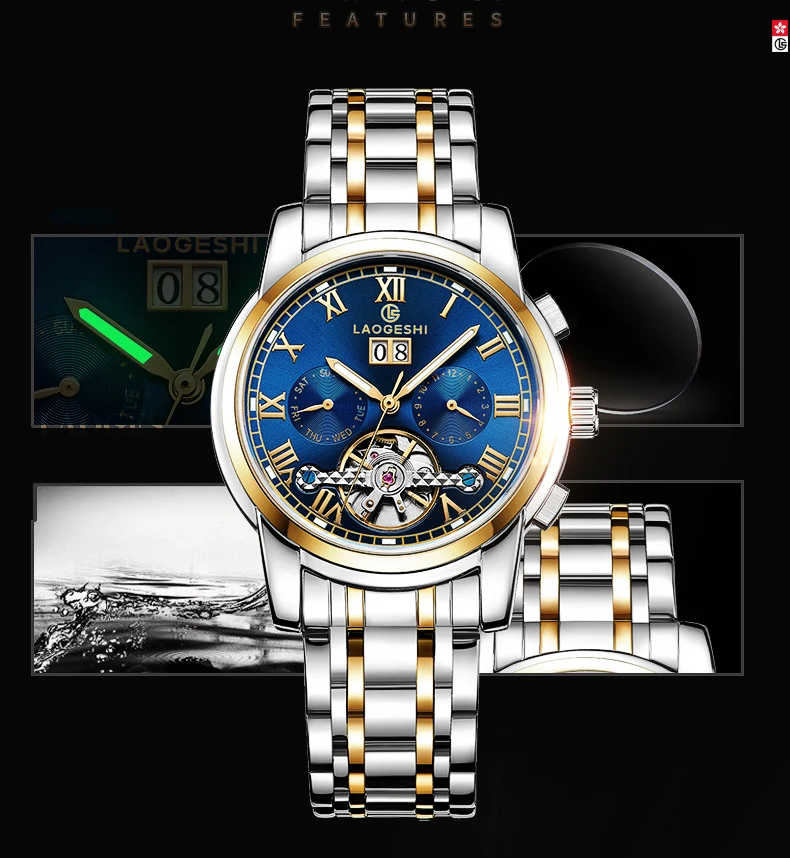Feature: Auto Date,Day/Date,Power Reserve,Water Resistant,Waterproof,Luminous,Luminous Hands,hollow out,Small three needle,tourbillon