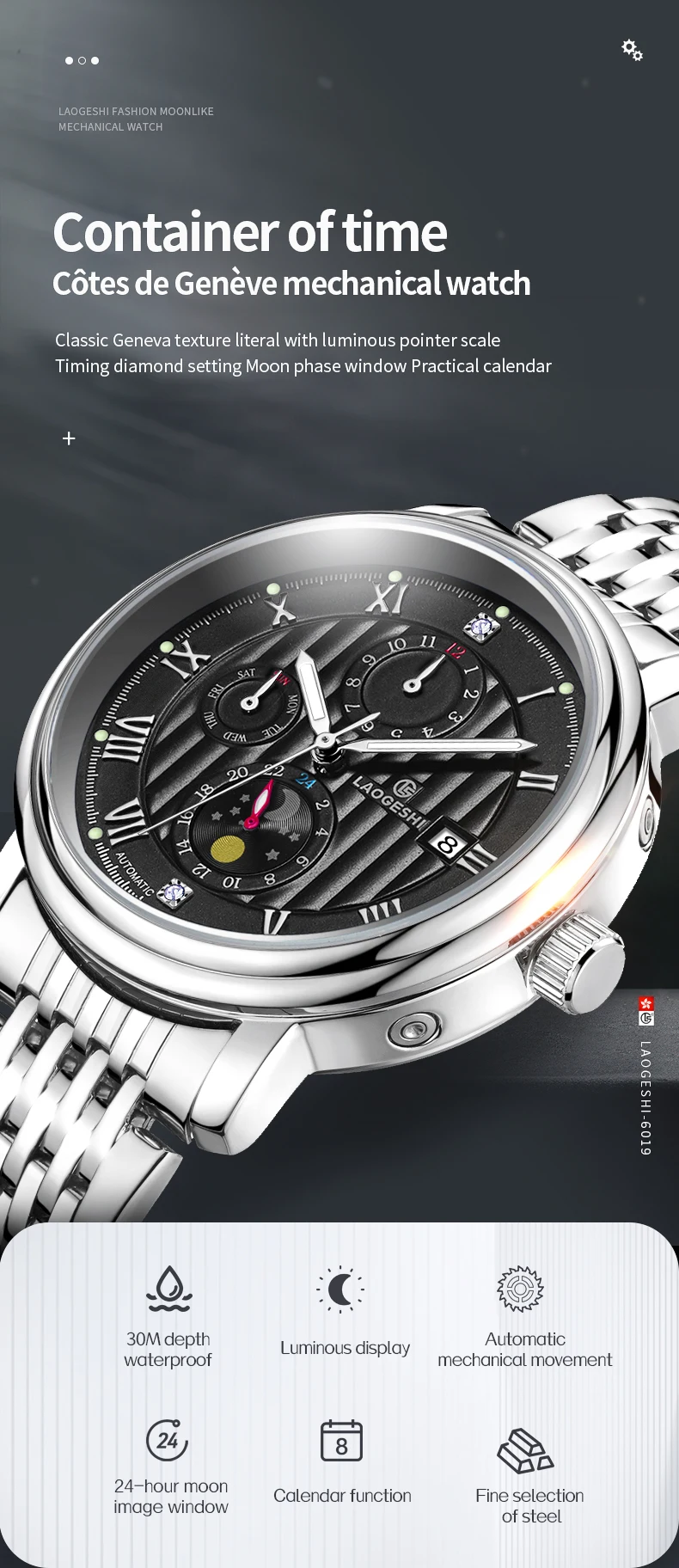 Foshan Lao Geshi Watch Industry Co., Ltd. is an enterprise specializing in the research and development, production, sales and service of watches. The main products distributed by the company are mechanical watches, quartz watches, electronic watches, watch accessories, packaging boxes, etc. The price is affordable and the variety is complete. The products sell well in all provinces and cities across the country, and are exported to the Middle East (Bahrain, Egypt, Iran, United Arab Emirates, Yemen, Palestine), Southeast Asia (Thailand, Vietnam, Myanmar, Malaysia), Europe, Russia, and the United States. Welcome to cooperate。