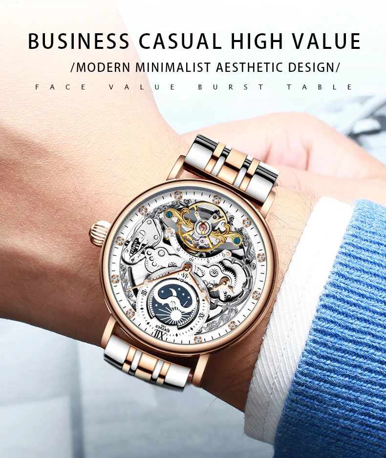 Men Watch Tourbillon Mechanical Movement Men's Fashion Business Wristwatch Classic Fashion Luxury Watch