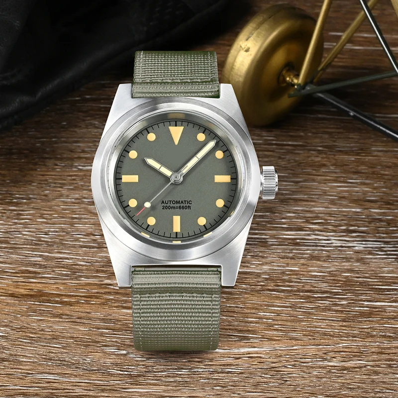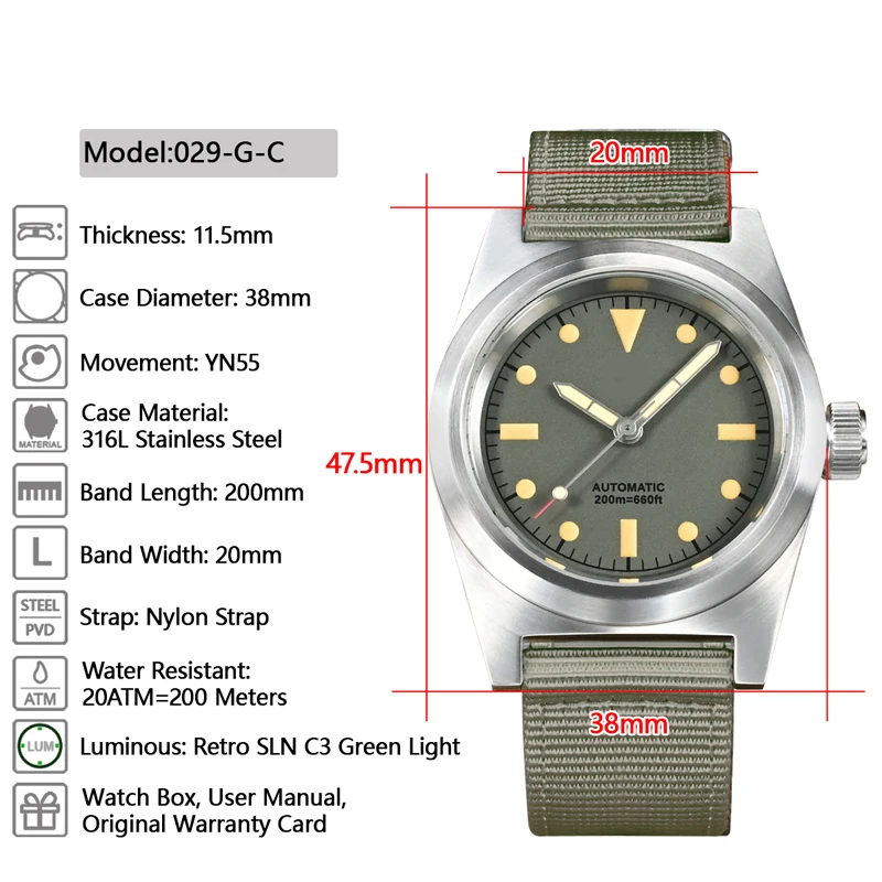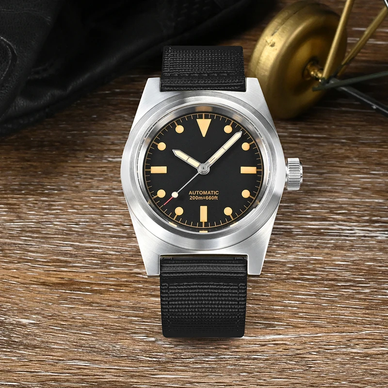 Men's 38mm NH35 Stainless Steel Automatic Mechanical Wristwatch Waterproof 200M Luminous Diver Feature 30mm Dial Display