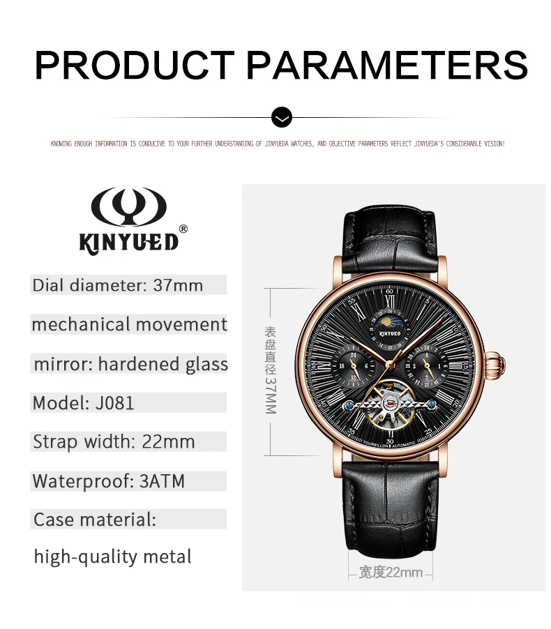 SPECIFICATIONSAge: 2022Band Length: 24cmBand Material Type: LeatherBand Width: 22 mmBrand Name: YHYOUHUICase Material: AlloyCase Shape: RoundCase Thickness: 15 mmClasp Type: BuckleDial Diameter: 42 MMDial Display: PointerDial Window Material Type: SAPPHIRE CRYSTALFeature: Shock Resistant,Waterproof,photography,hollow out,tourbillon,Power Reserve,Water Resistant,Auto Date,Complete Calendar,Luminous Hands,Week Display,chronograph,Day/DateMaterial: AlloyModel Number: J081Movement Brand: HANGZHOUPlace of Origin: Shanghai, ChinaType: sport,Luxury,Business,Automatic,FashionUser:...