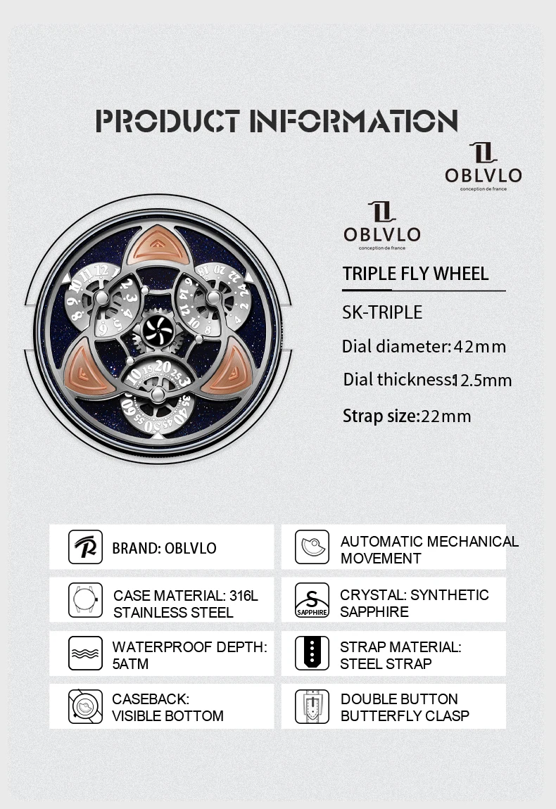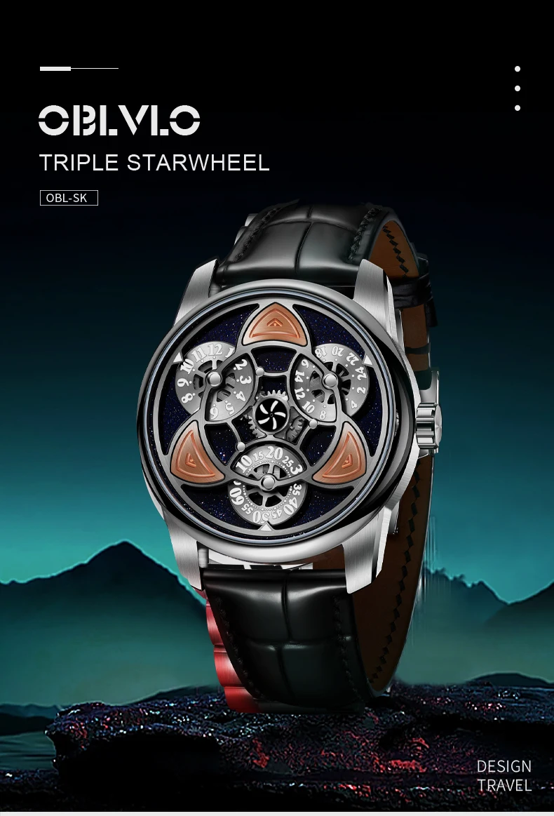 OBLVLO Original Clover Automatic Mechanical Men Watch Super Luminous Sapphire Glass Waterproof 50M Men Watches