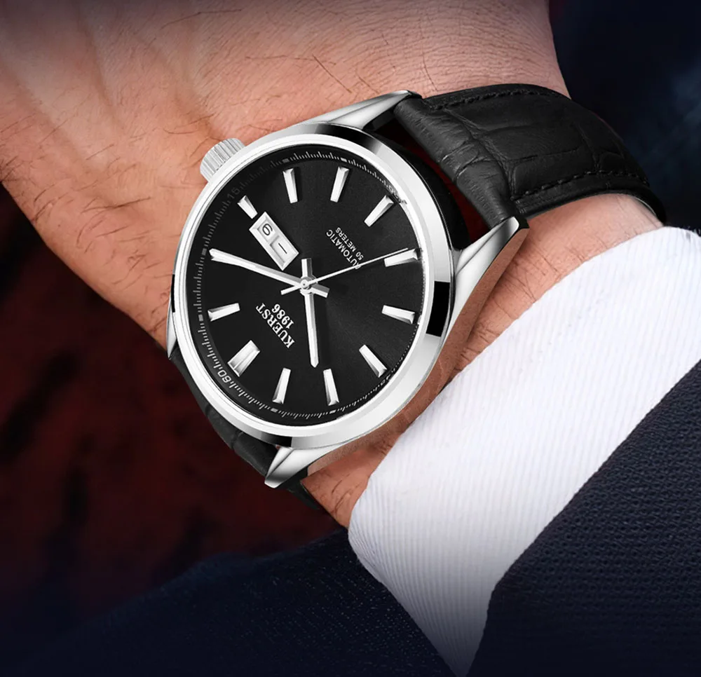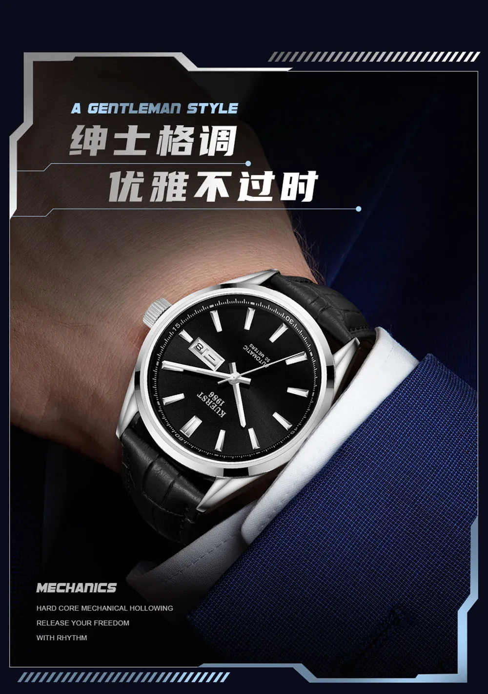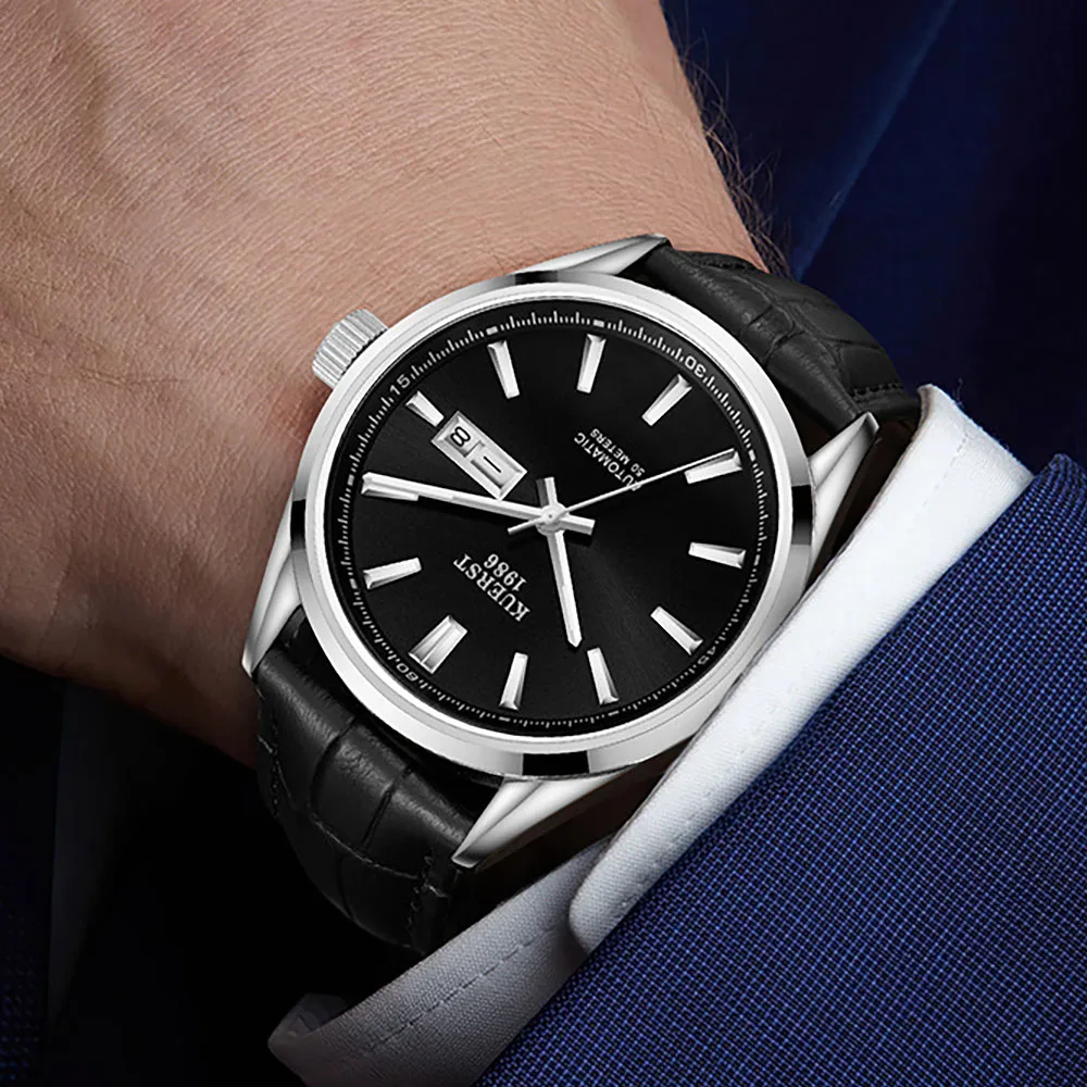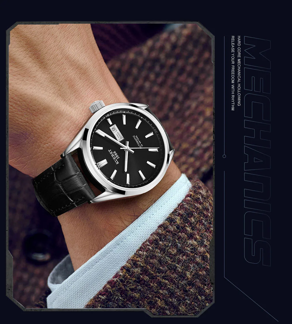 Unique Design Men Watch Automatic Mechanical Power Reserve Luxury Leather Stainless Steel Waterproof Fashion Business Watches