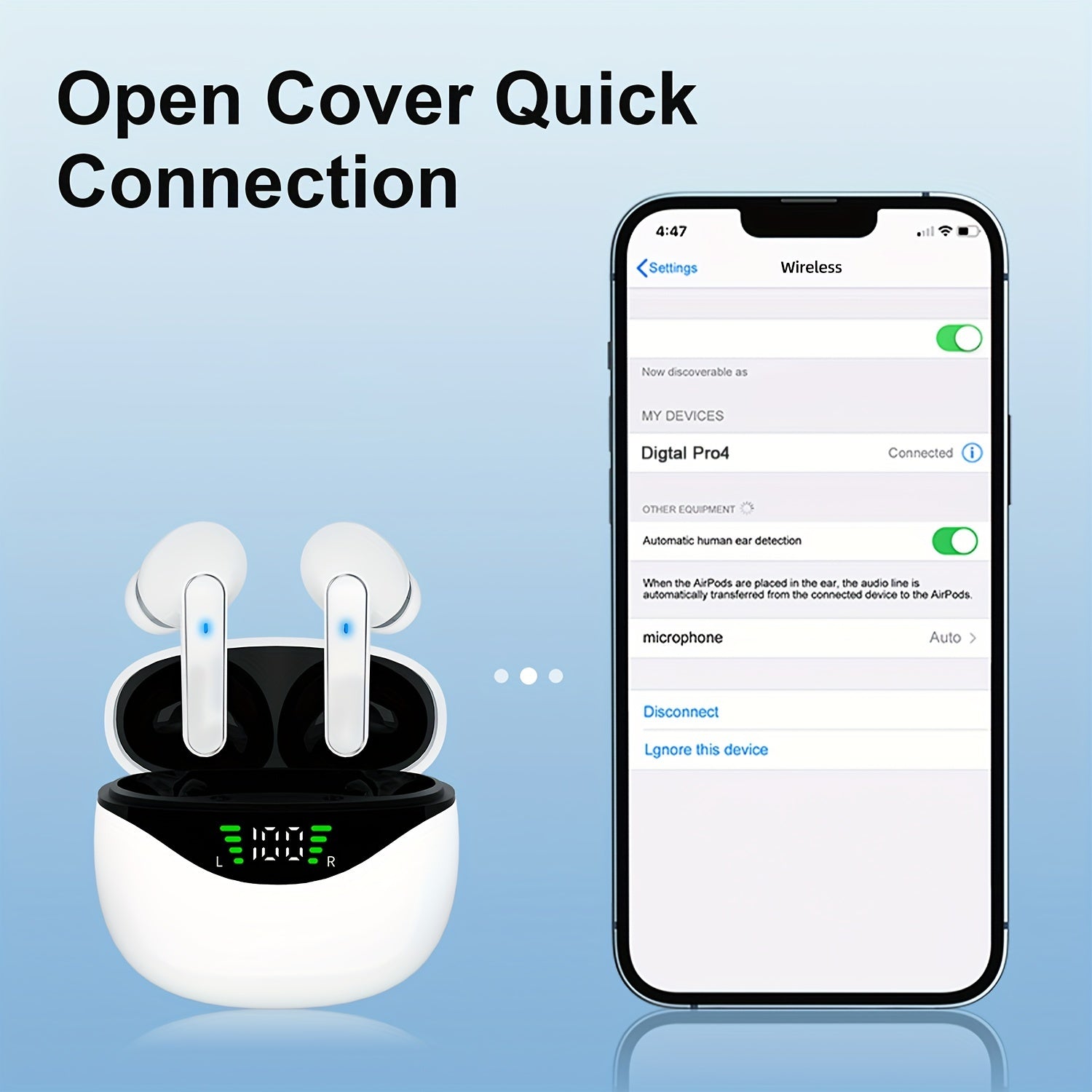1 Pair LIFEBEE True Wireless Earbuds with Digital LED Power Display, TWS In-Ear Headphones with ENC Noise Cancelling, Built-in Condenser Mic, Sports Exercise Earphones with Deep Bass, Type-C Rechargeable Case, 300mAh Lithium
