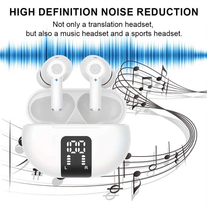 These wireless earbuds for language translation feature touch control and noise reduction, allowing you to listen to music, answer calls, or reject calls with ease. Enjoy clear conversations thanks to noise reduction technology. The ergonomic design of the earbuds ensures a comfortable and immersive music listening experience, even during extended wear.