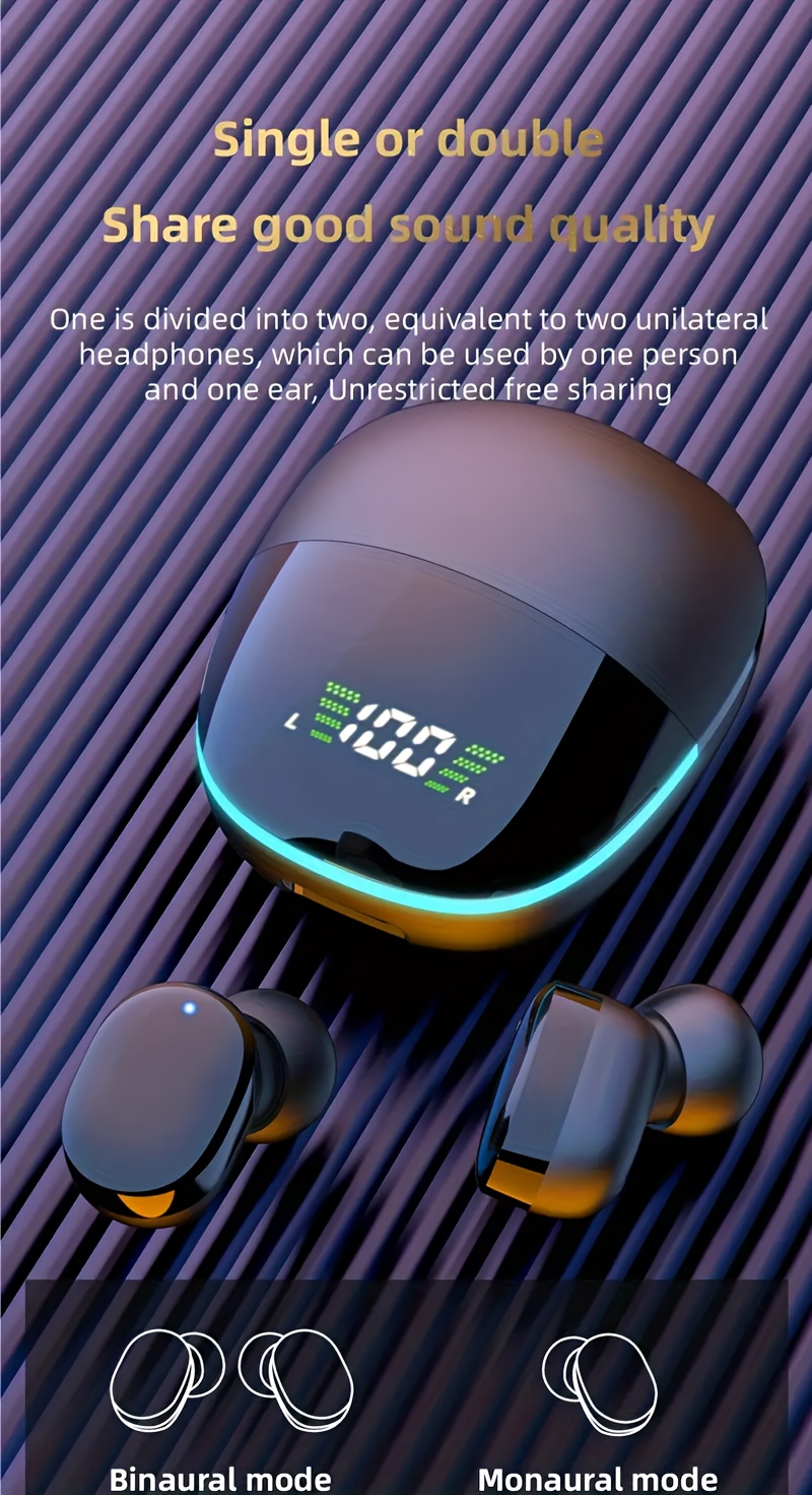 2024 New Wireless Earphones - Three-Screen Intelligent Display, High-End Fashionable Mirror Design | Mobile Phone Emergency Charging for Sports & Music