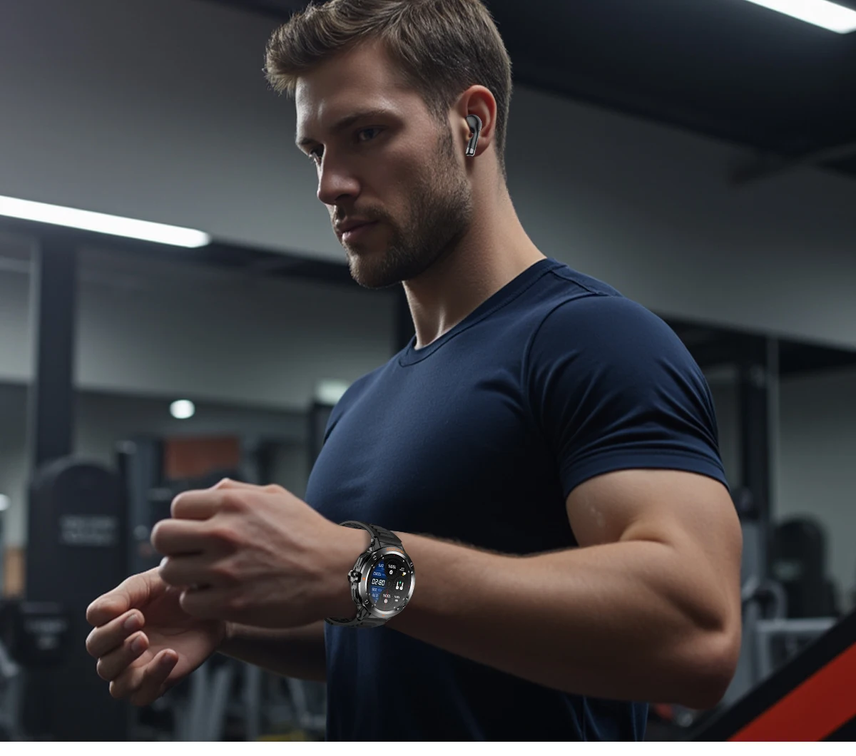 2025 NewSmart Watch With BT earphone 2-In-1 NFC Bluetooth Call Men Watch GPS Track Heart Rate Monitor Play Music SmartWatch GIFT