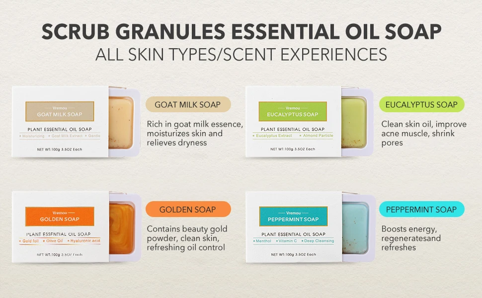SPECIFICATIONSBrand Name: VremouChoice: yesFunction: Cleaning,HydratingHign-concerned Chemical: NoneIngredient: MintItem Type: SoapModel Number: jin seNET WT: 400gNumber of Pieces: One UnitOrigin: Mainland ChinaPlace Of Origin: ChinaQuantity: 1Soap Type: Handmade Soap