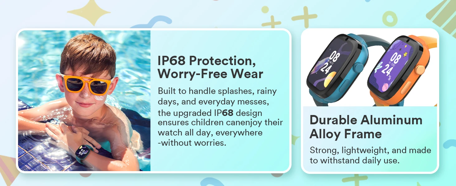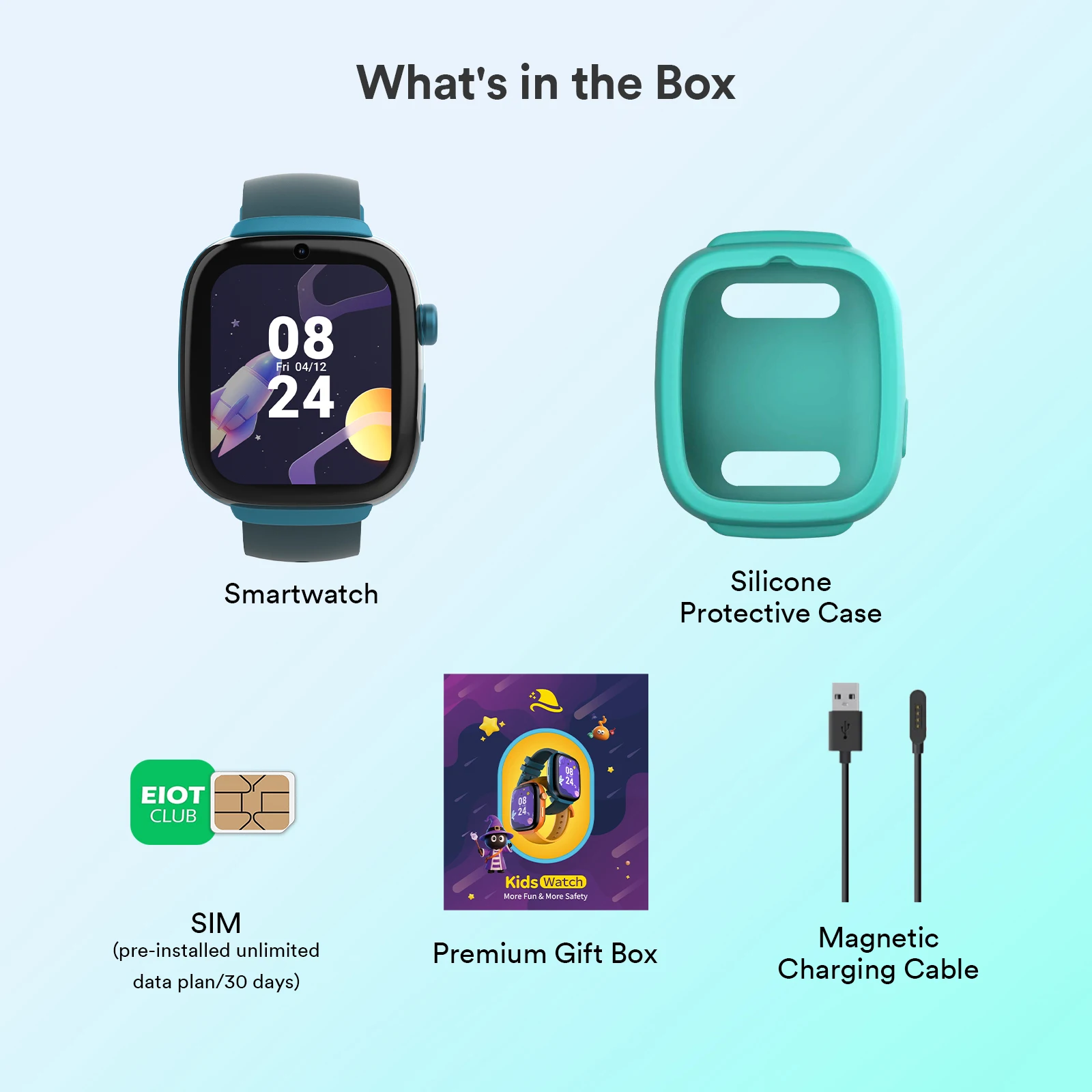 Included in the box: Kids Watch, Watch Band, Case & Lanyard, Charging cable, SIM Eject Tool