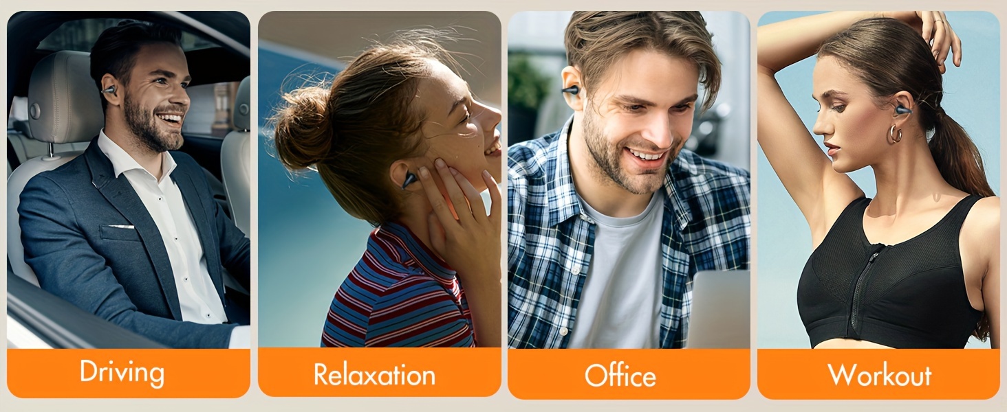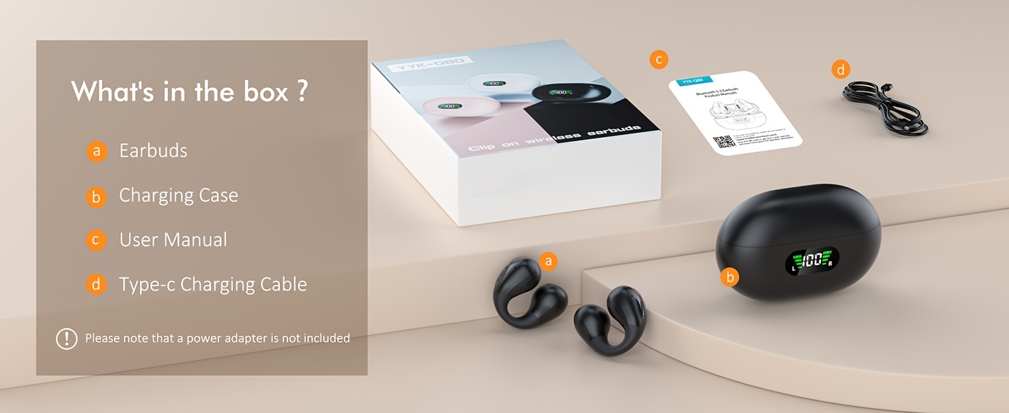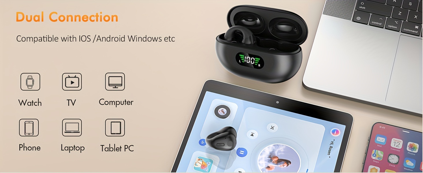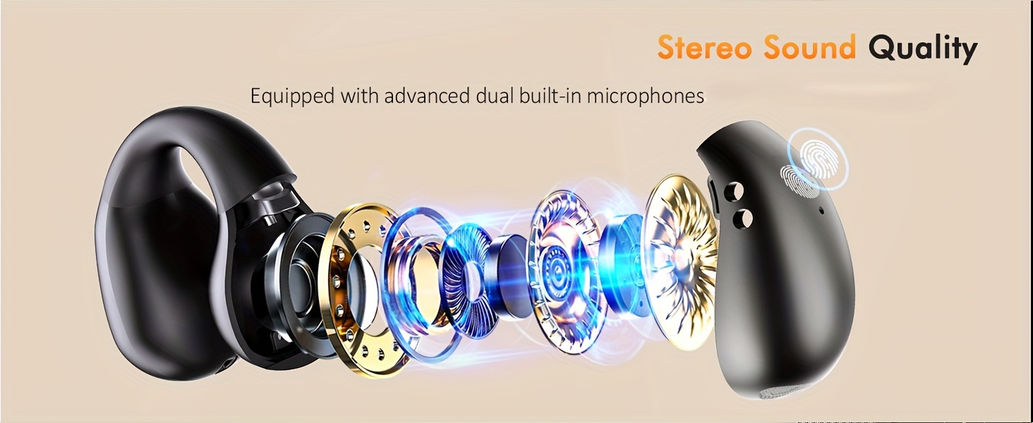 60 Hour Playback Time Bone Conduction Earphones - Advanced Wireless Clip-On Earbuds with Digital Display Charging Case - Perfect for Running, Walking, Exercise, and Active Lifestyles