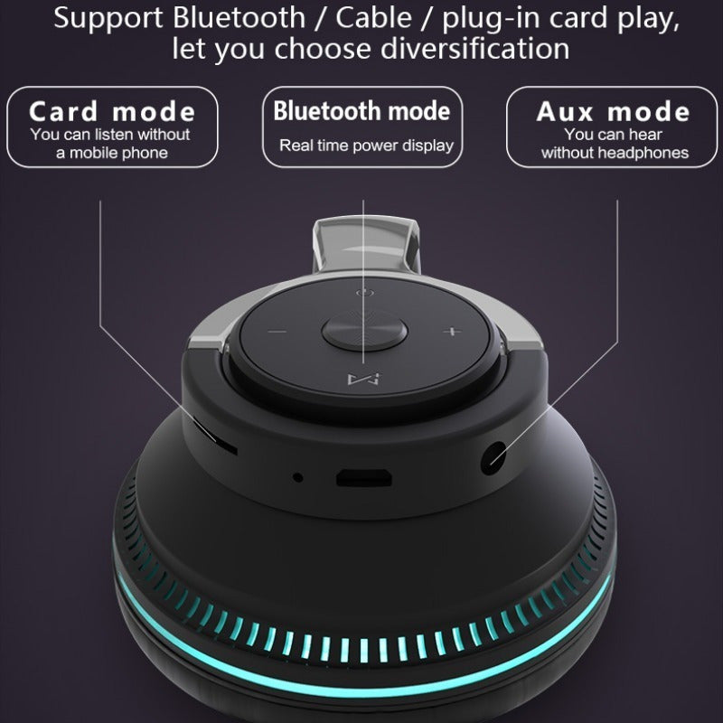 7 Color LED Lights Wireless Foldable Earphones with Microphones, Compatible with Smartphones, PC, and Tablets
