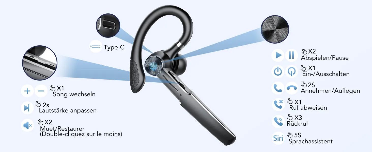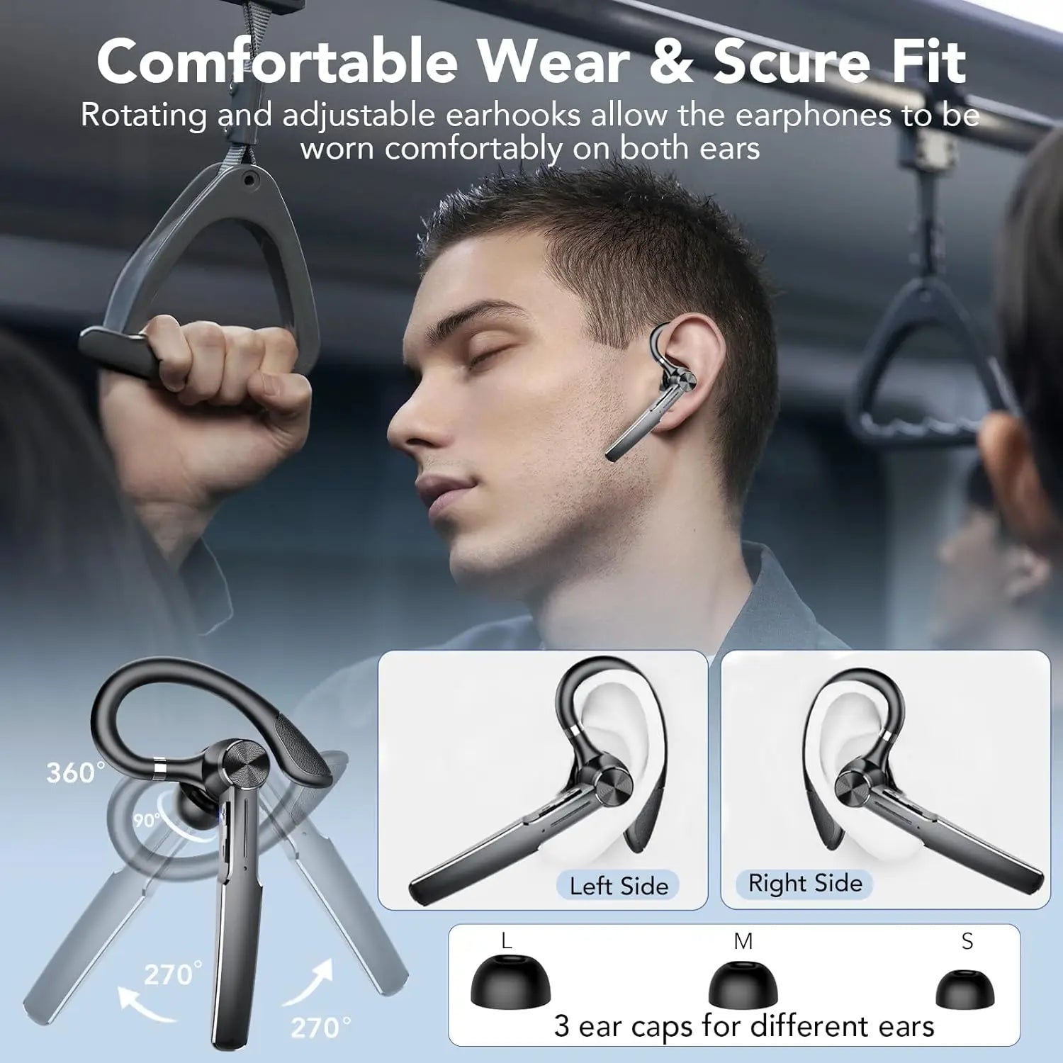 Bluetooth Headset Business Headphone Waterproof Wireless Earbuds Earphones Single Ear Bluetooth Headset