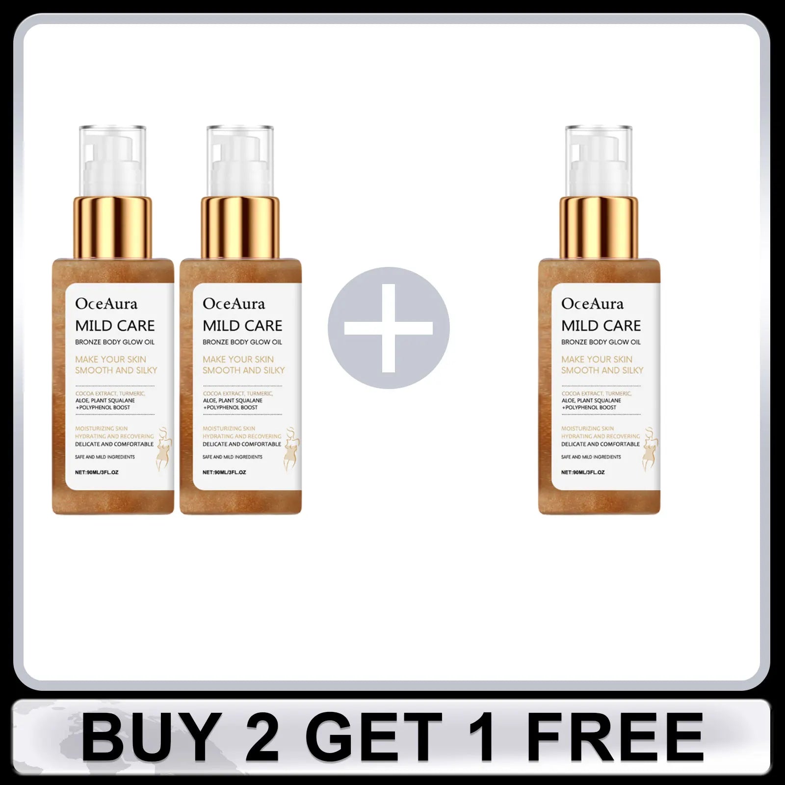 OCEAURA Body Shimmer Oil Bronze Body Shimmer Glow Waterproof Smooth Highlight Silky Not Clog Pore Brighten Makeup Shine Liquid for Party 90ml