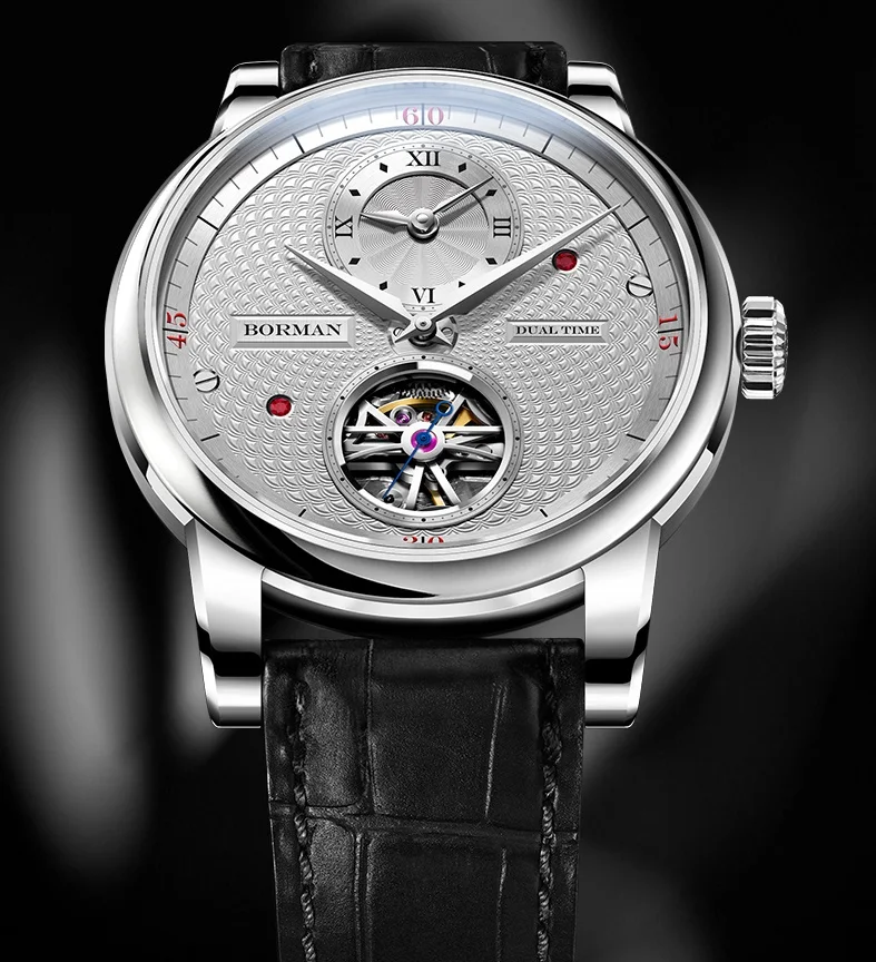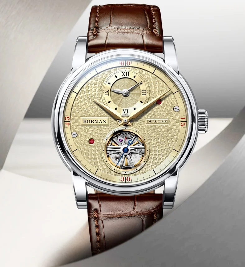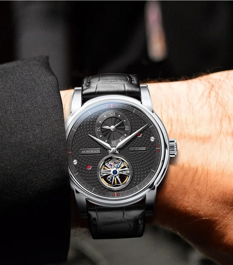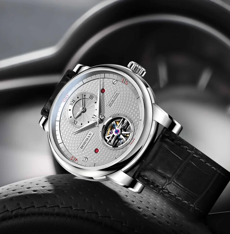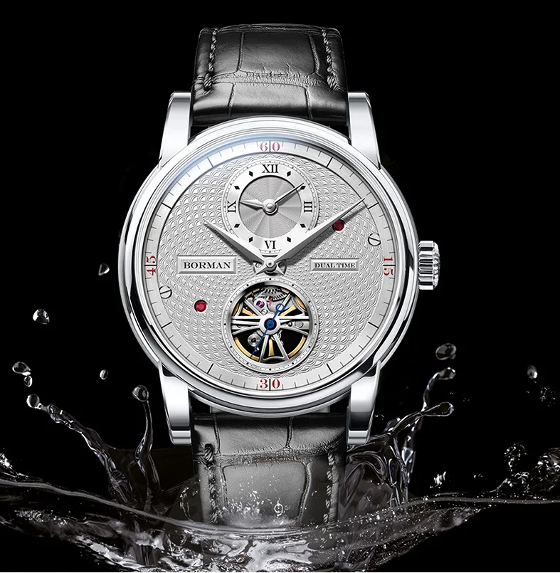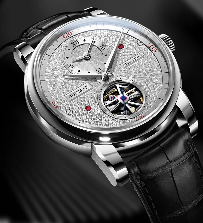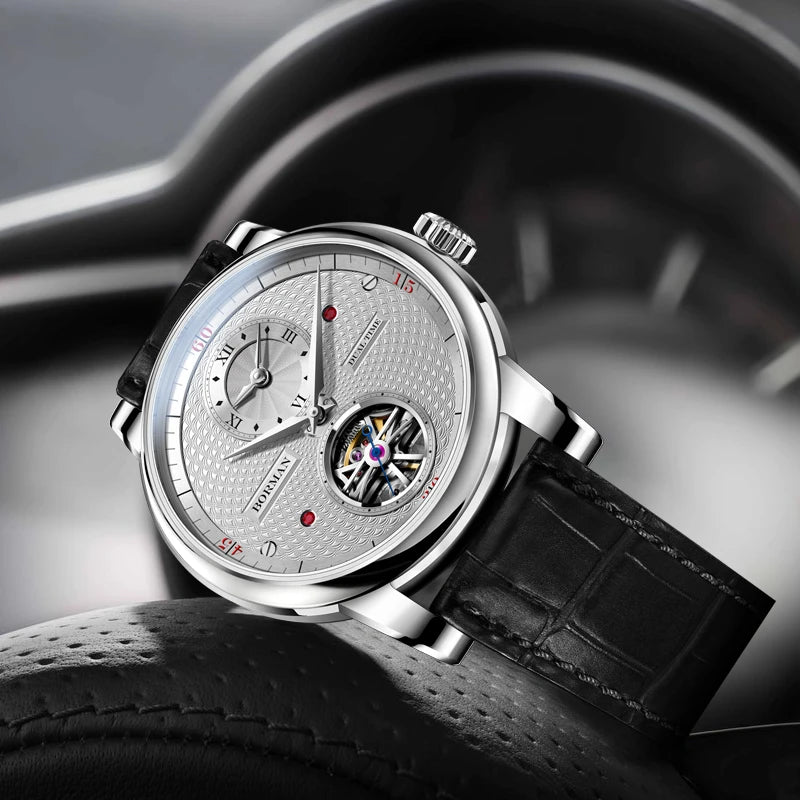 BORMAN 2024 Men's Skeleton Automatic Watch Unique Designer Water-Resistant Leather Band Pointer Dial Display