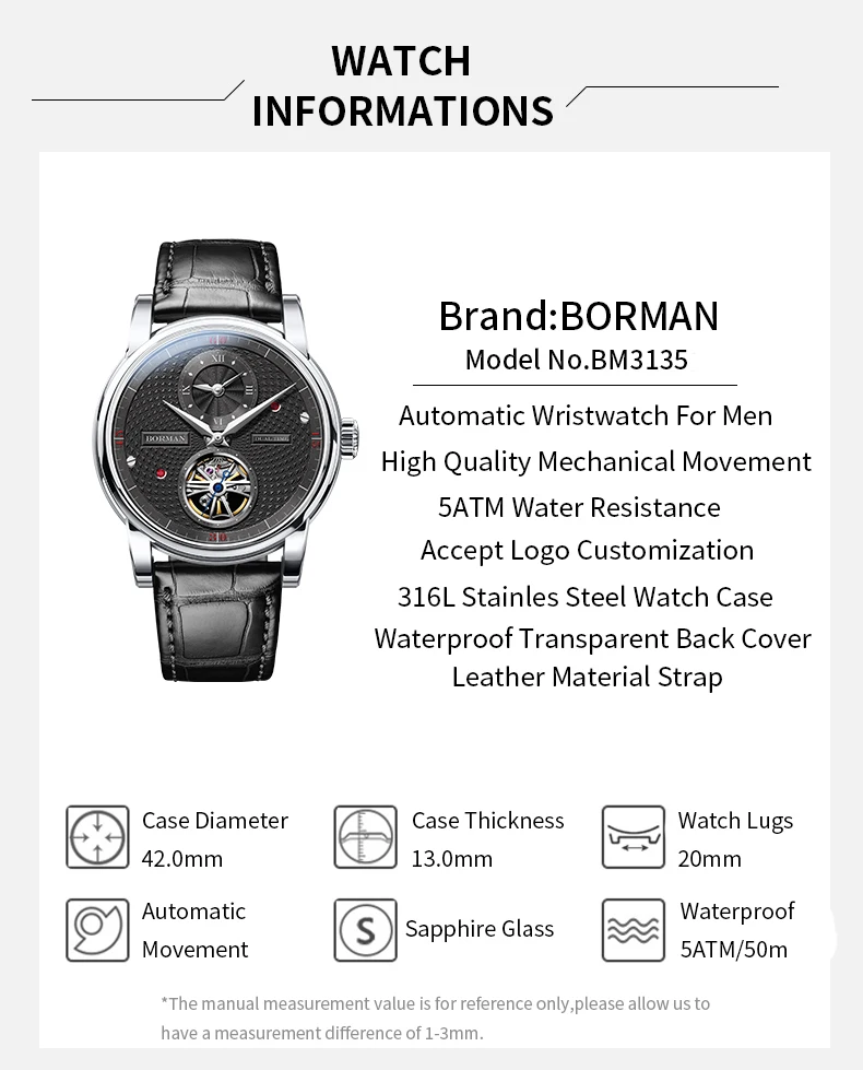 * We only use top-quality self-developed movements/ Swiss/ Japan/ domestic 3A movements.