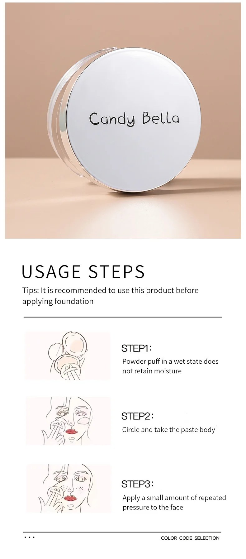 1PCS Candy Bella Violet &Blue Sky Cream To Powder Skin-friendly Skin Natural Face