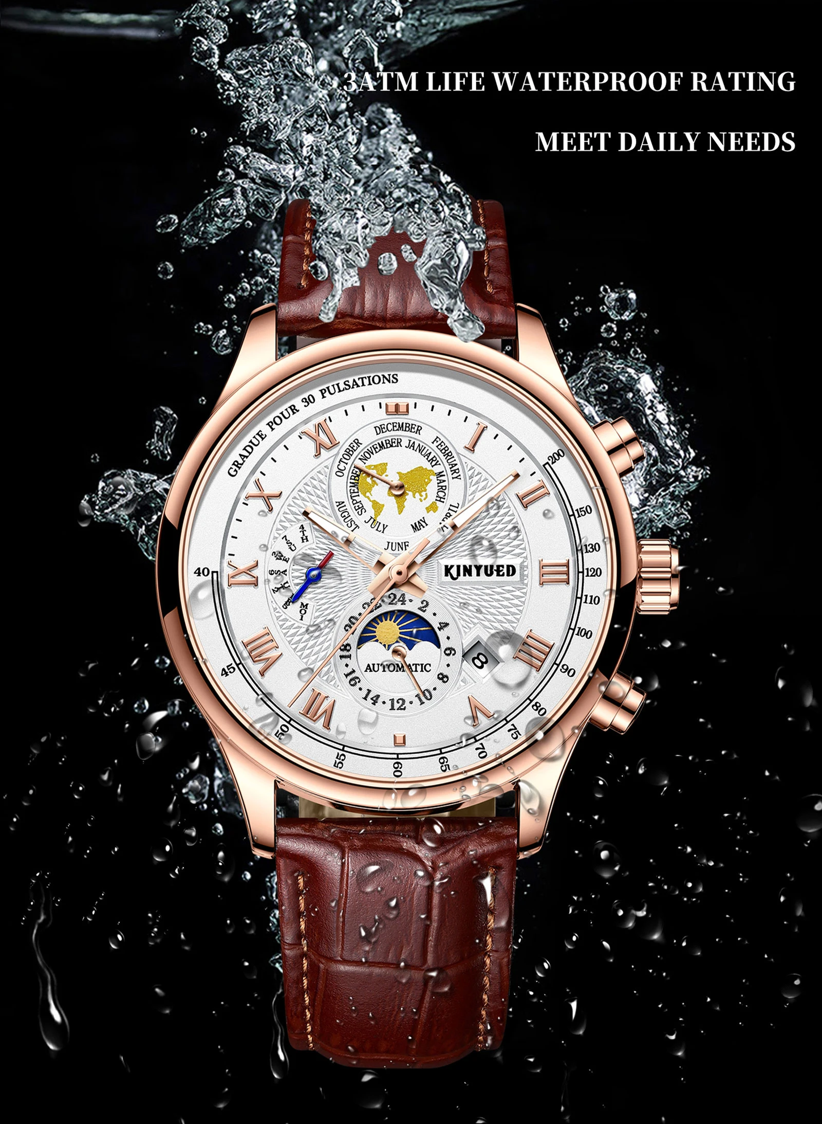 Feature: Day/Date,Moon Phase,Multiple Time Zone,Power Reserve,Water Resistant,Waterproof,Luminous