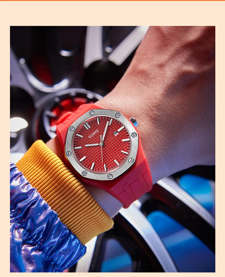 Fashion Men's Quartz Sports Watch Alloy Graduated Dial Silicone Strap Waterproof Quartz Watch with Date Unisex