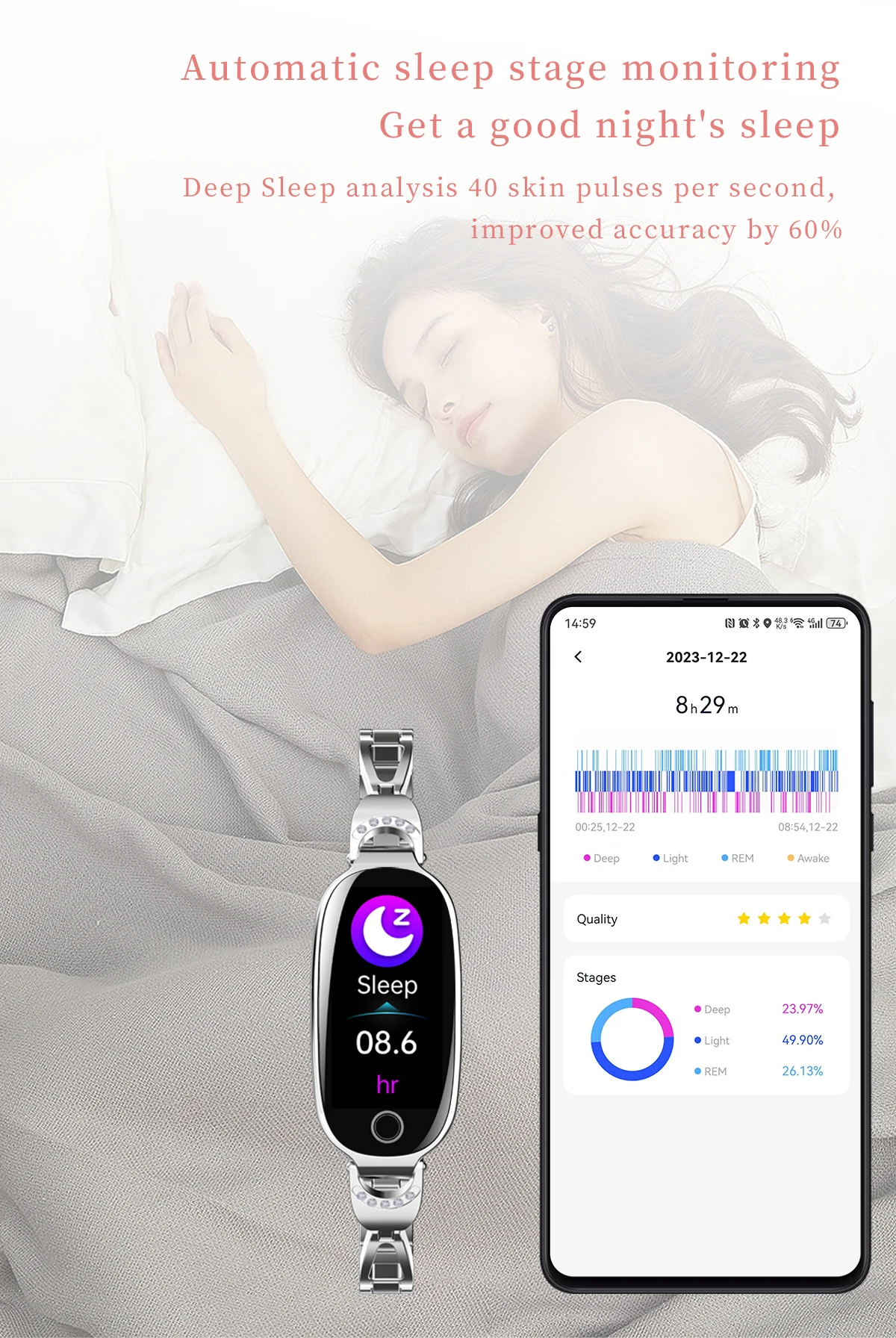 size: Host: 22.3*49.4mm, thickness: 12.7mm (including heart rate)
