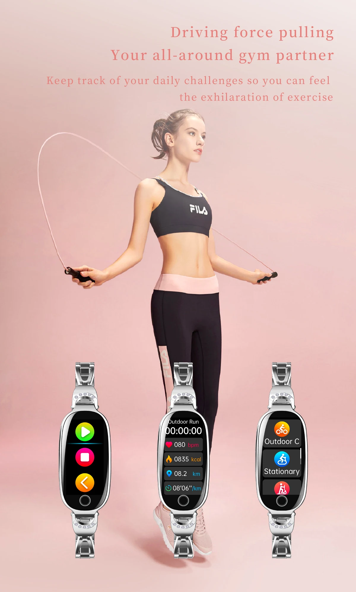 Function: Passometer,fitness tracker,sleep tracker,Message Reminder,Call Reminder,Answer Call,Dial Call,Push Message,24 hour instruction,Alarm Clock,World Time,Power Reserve,Month,Heart Rate Tracker,Interactive Music,Calendar
