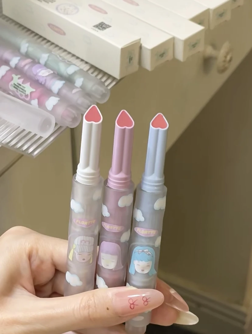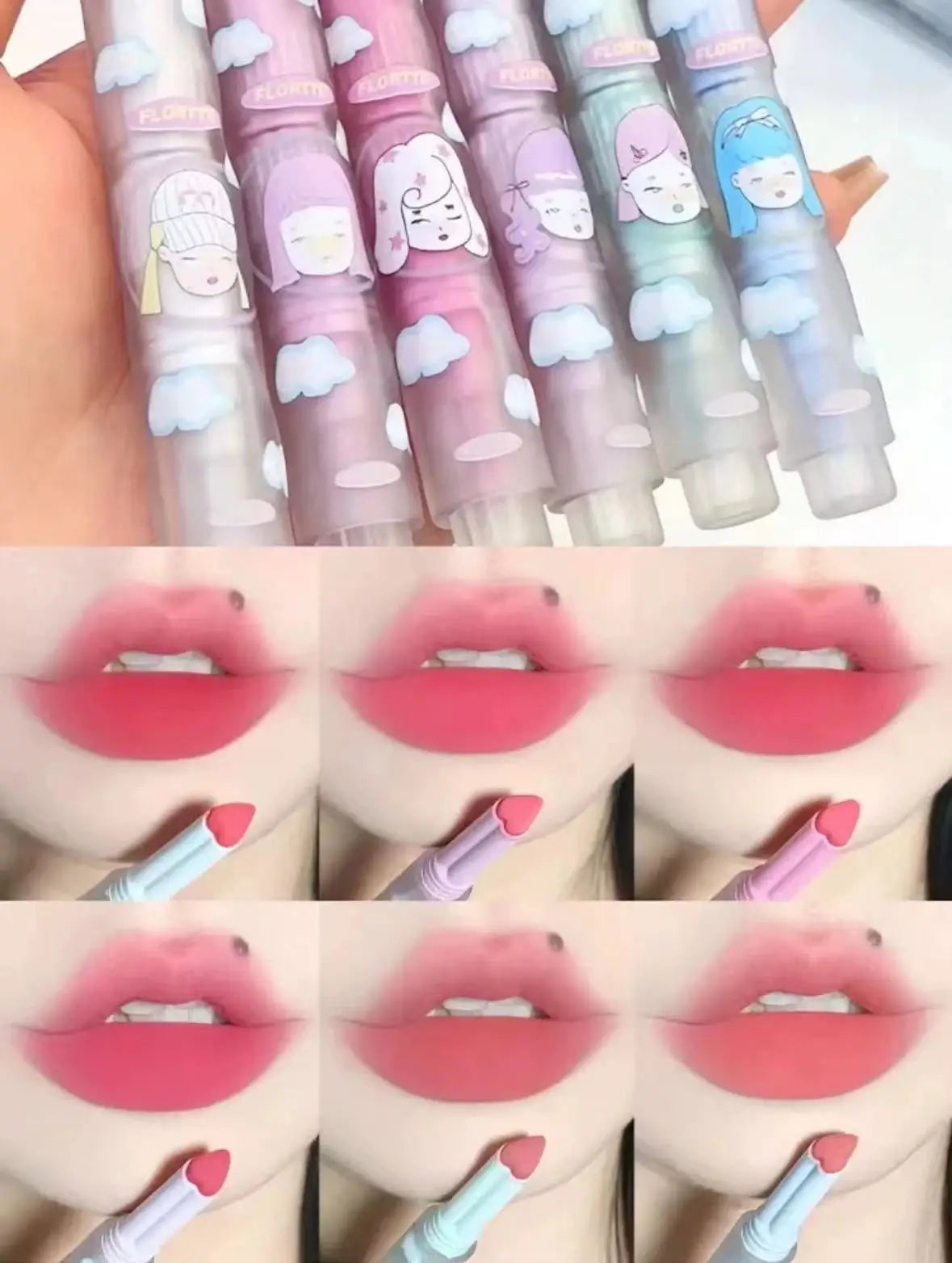 Experience the soft mist color rendering of FLORTTE Girls' Dormitory Series Solid Lip Glaze, creating a delicate and natural look that lasts all day.