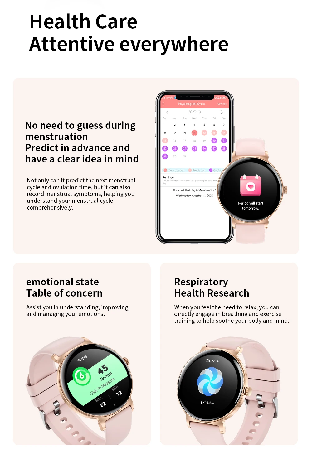 ➤Health monitoring: heart rate, blood oxygen, sleep, women's health monitoring