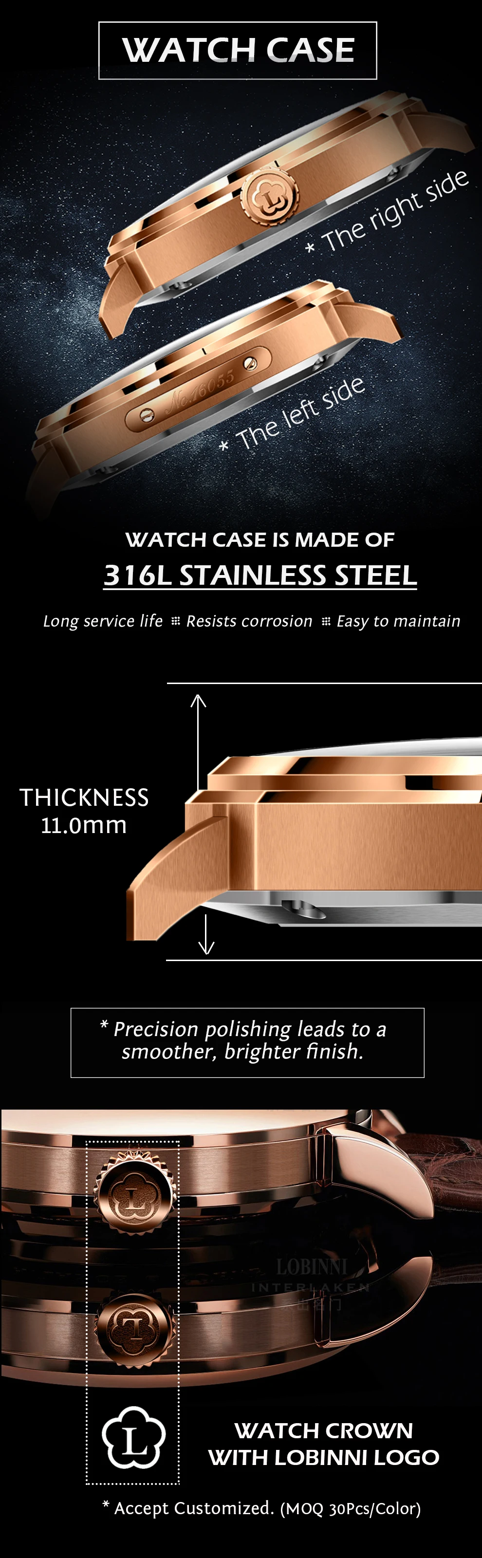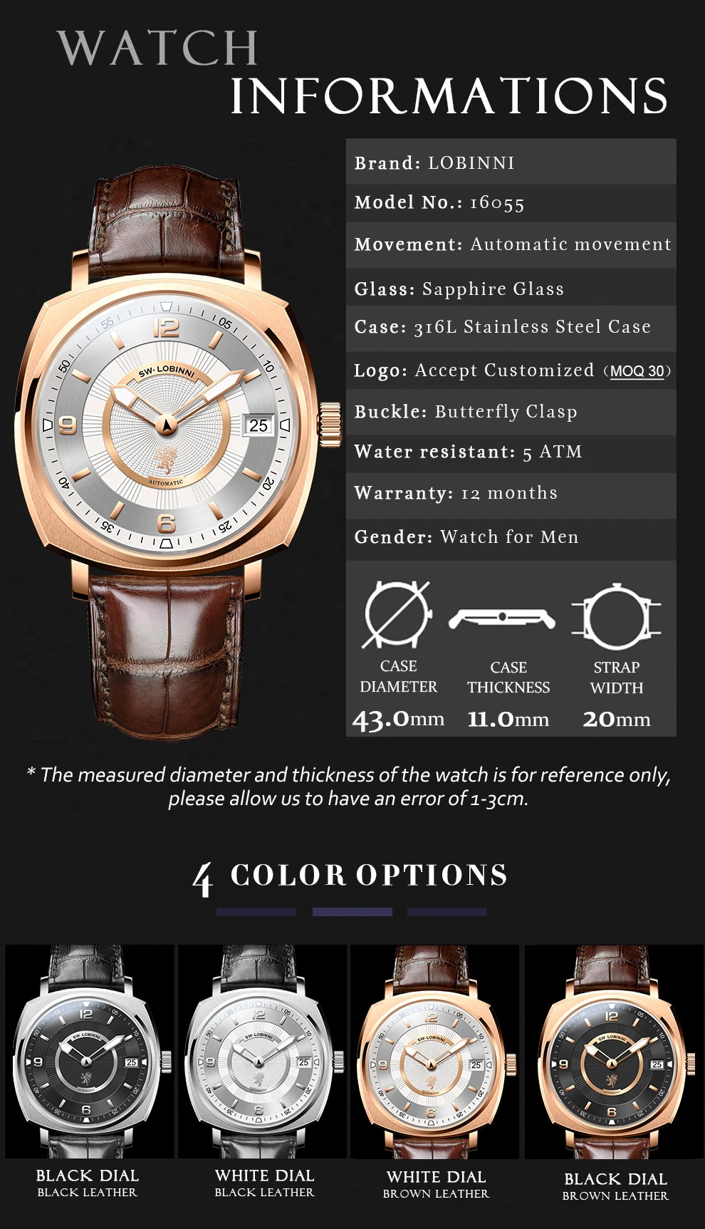 A: Our LOBINNI brand watches were established in 1963 with advanced high-tech production facilities and focus on producing high quality watches.