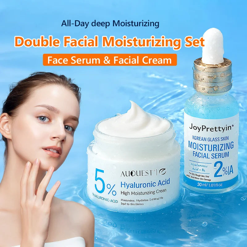 Hyaluronic Acid Face Serum & Cream Skin Care Set Deep Nourishing Lasting Moisturising Anti Dry Facial Skincare Cosmetics Kit
