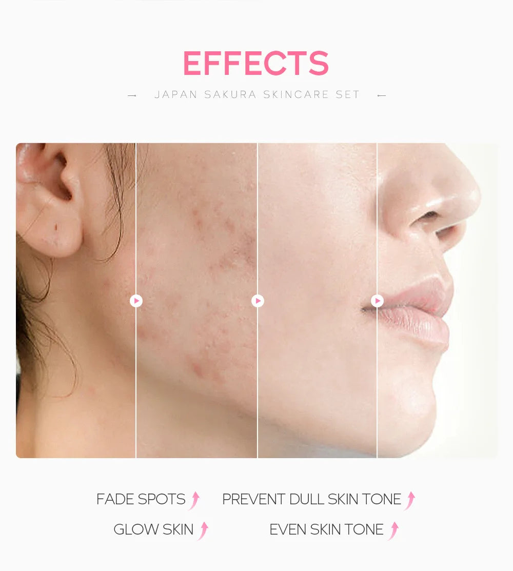 LAIKOU Sakura Skin Care Set Facial Cleanser Face Cream Essence Facial Eye Cream Skincare Product 4pcs Kit