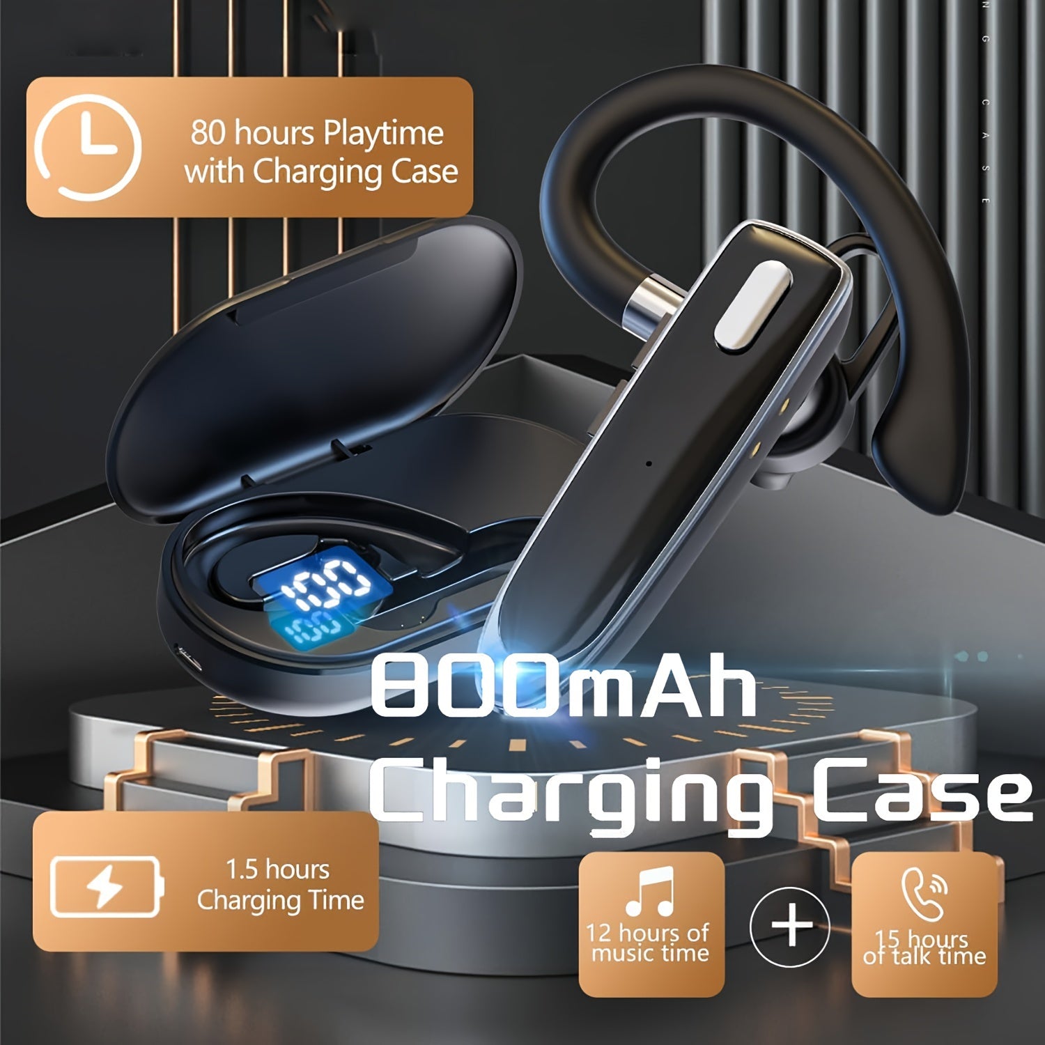 Long-Lasting Wireless Earphones - 90 Days Standby, 110 Hours Talk Time, Crystal-Clear Audio, Built-in Microphone, Sweat-Resistant, Universal Compatibility for Mobile Phones, PC Tablets, Laptops, Perfect for Truck Drivers, Dri