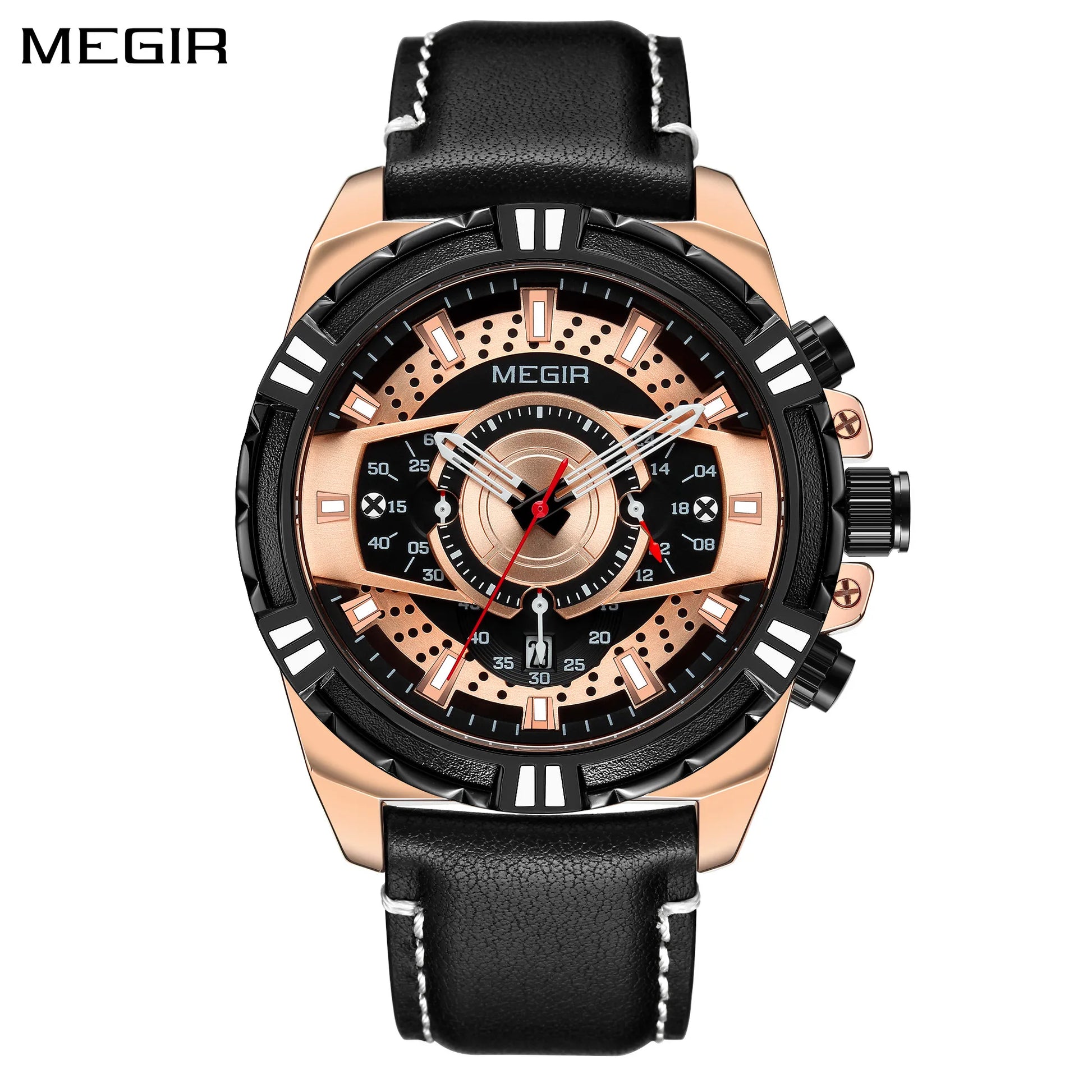 MEGIR Luxury Chronograph Watch - Leather Belt Luminous Sports Business