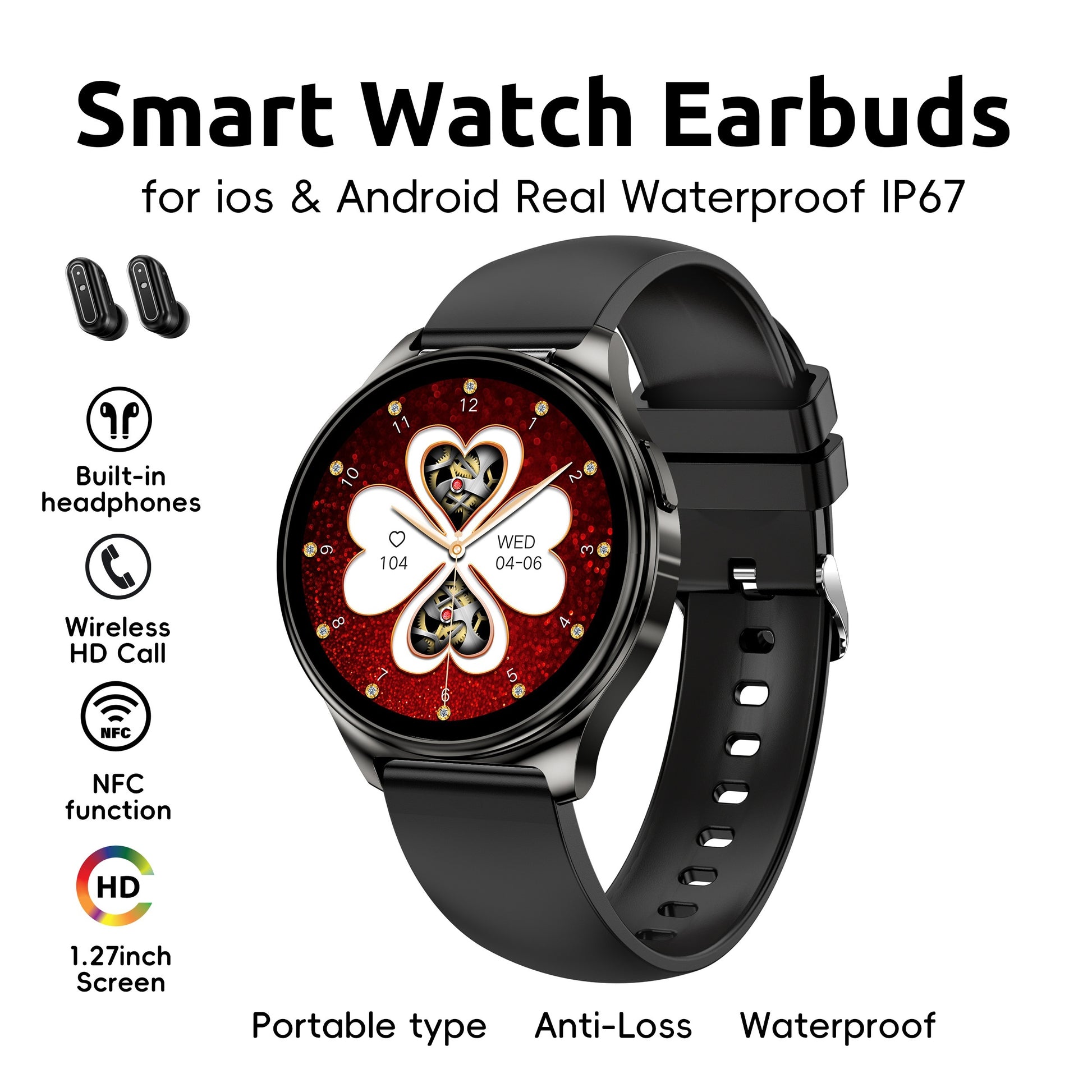 Newest Smart Watch With Earbuds (Wireless Call) For Women's Men's Best Gift, 1.27" HD Display, Multi Sports Modes, Sedentary Reminder, TWS Earphones Music, Weather Forecast, Sports Pedometer Watch For Android IOS