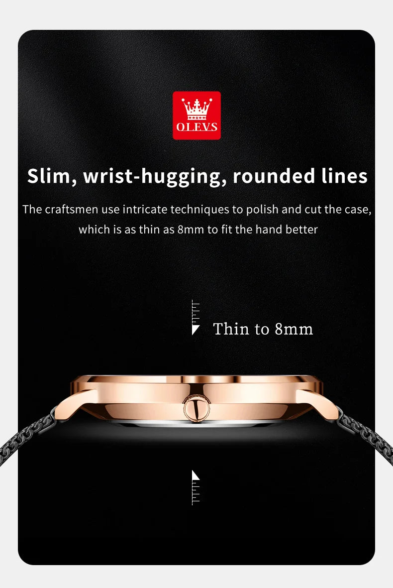 The OLEVS Business Watch is crafted for the discerning gentleman who demands both style and functionality. This premium timepiece features a sleek stainless steel mesh band that transitions seamlessly from boardroom to evening events.