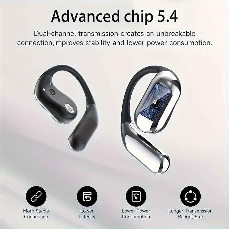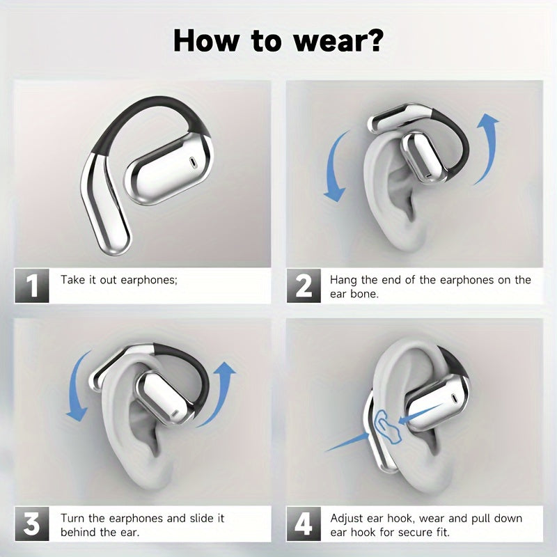Open ear BT5.4 earphones, wireless earphones with built-in microphone and ear hook, 50H playback time, earplugs with LED display charging case, suitable for running, fitness, cycling, exercise, and sports earphones