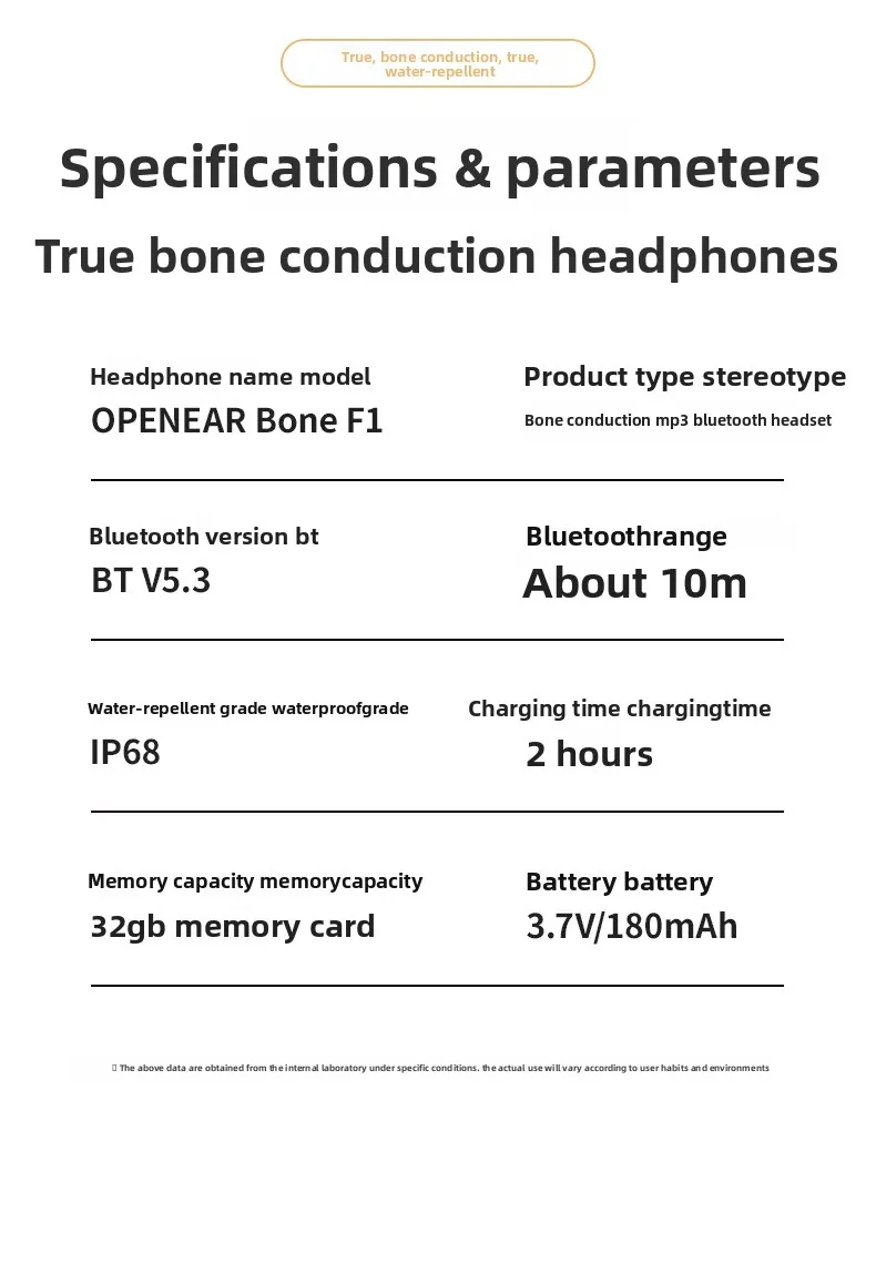 Openear Bone F1 Bone Conduction Swimming MP3 for Headphones Waterproof Outdoor Sports Earphones Closed Design