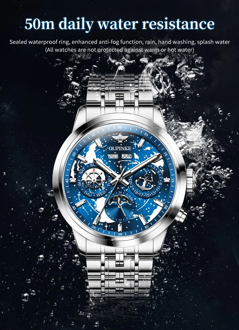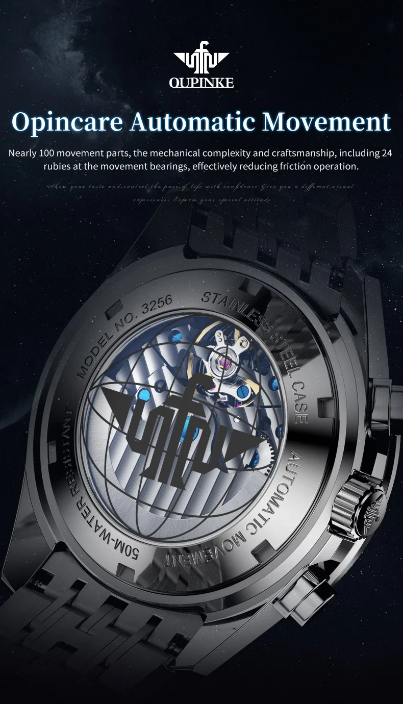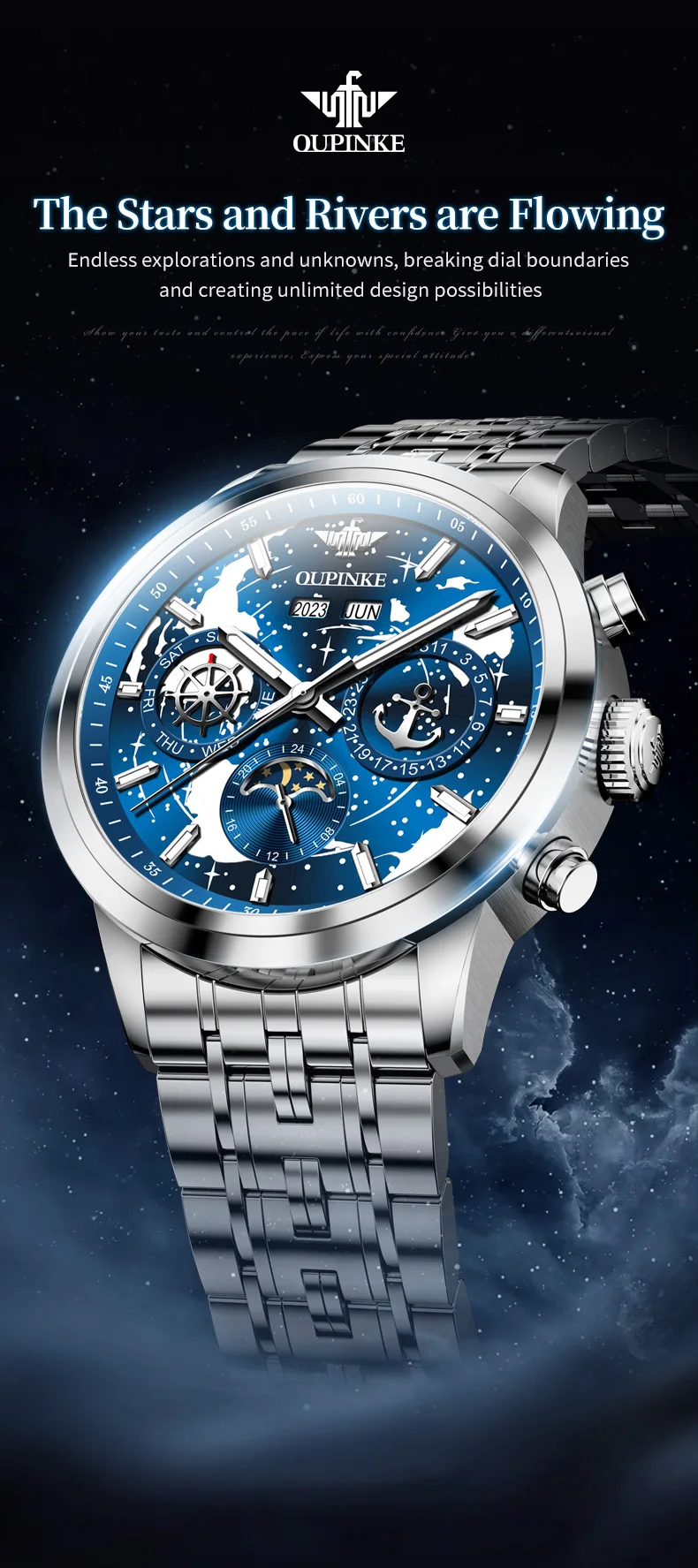 OUPINKE 3256 Fashion Men Watch Nebula Surge Dial Men Waterproof Night Light Calendar Week Original Automatic Mechanical Watch