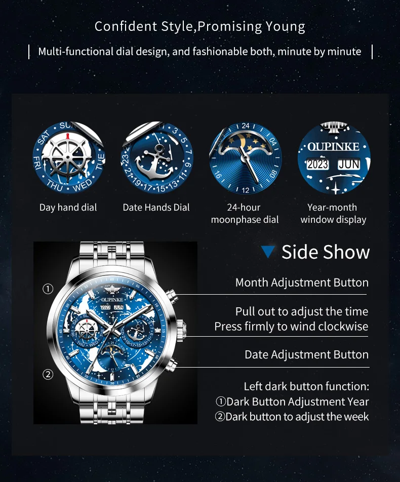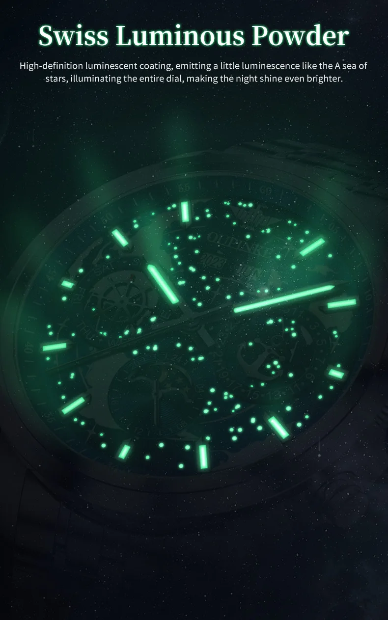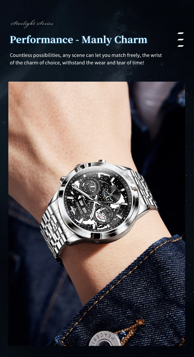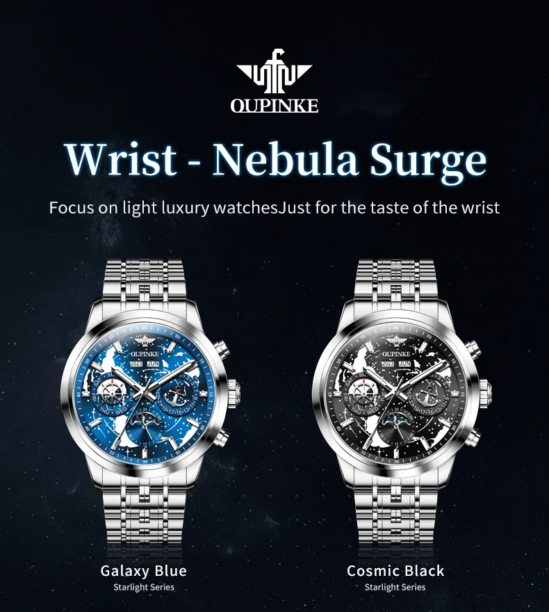 OUPINKE 3256 Fashion Men Watch Nebula Surge Dial Men Waterproof Night Light Calendar Week Original Automatic Mechanical Watch