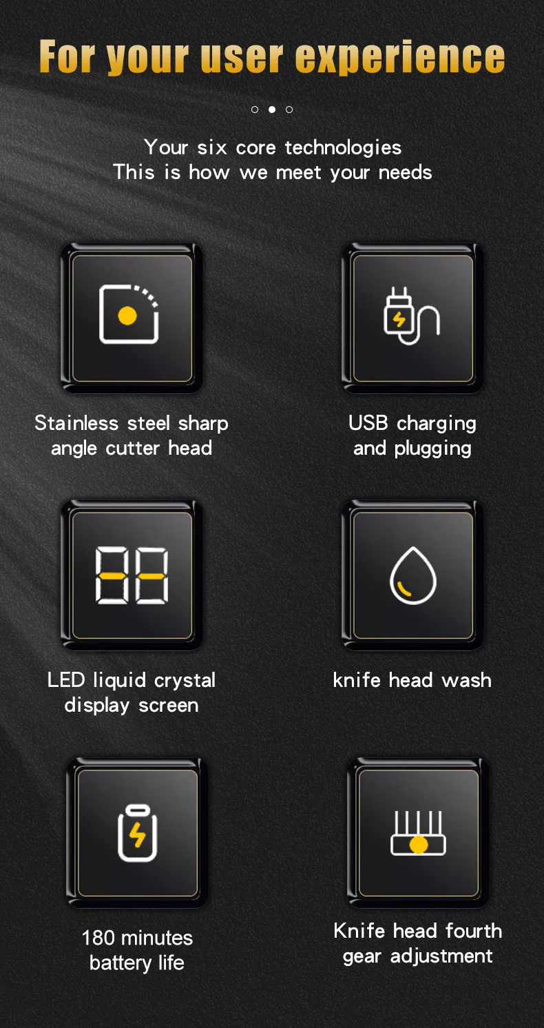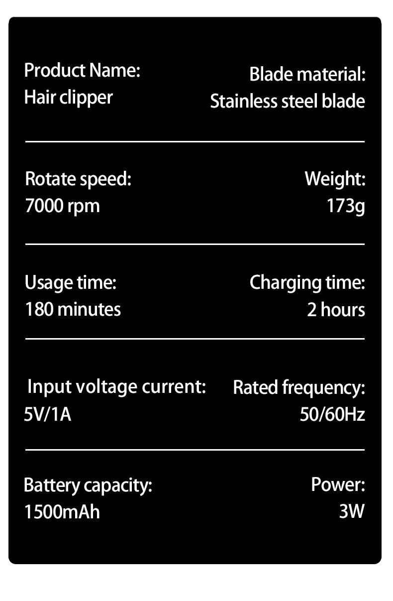 Function: wet haircut,dry haircut,floating head,Fast Charging,Charging indication