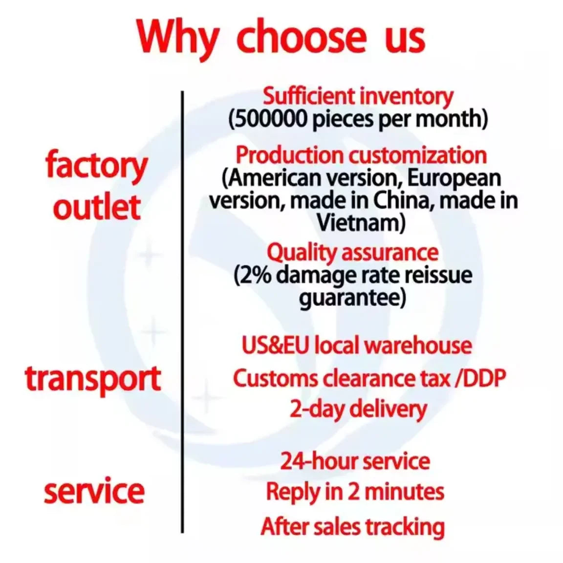 We have local warehouses in California/Louisiana/New Jersey/Florida, which can deliver goods within 3-5 days. We can provide USPS/FedEx/UPS services and overnight transportation services for people anywhere in the United States. At the same time, we have a local warehouse in Germany, which can provide delivery services within 3-5 days for the whole EU countries, without tax and customs problems~