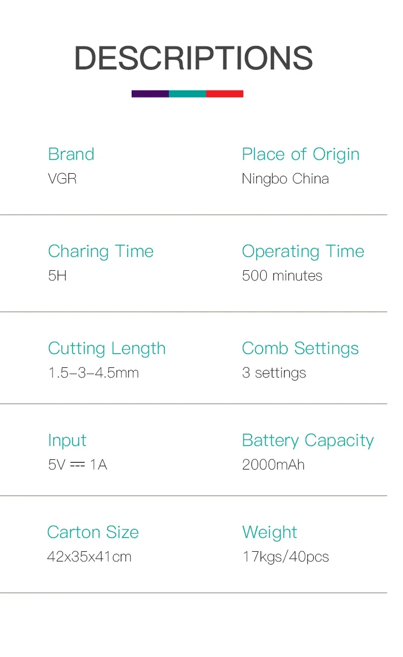 VGR Hair Cutting Machine Electric Hair Clipper Professional Beard Hair Trimmer Face Haircut Mustache Barber Trimer For Men V-937